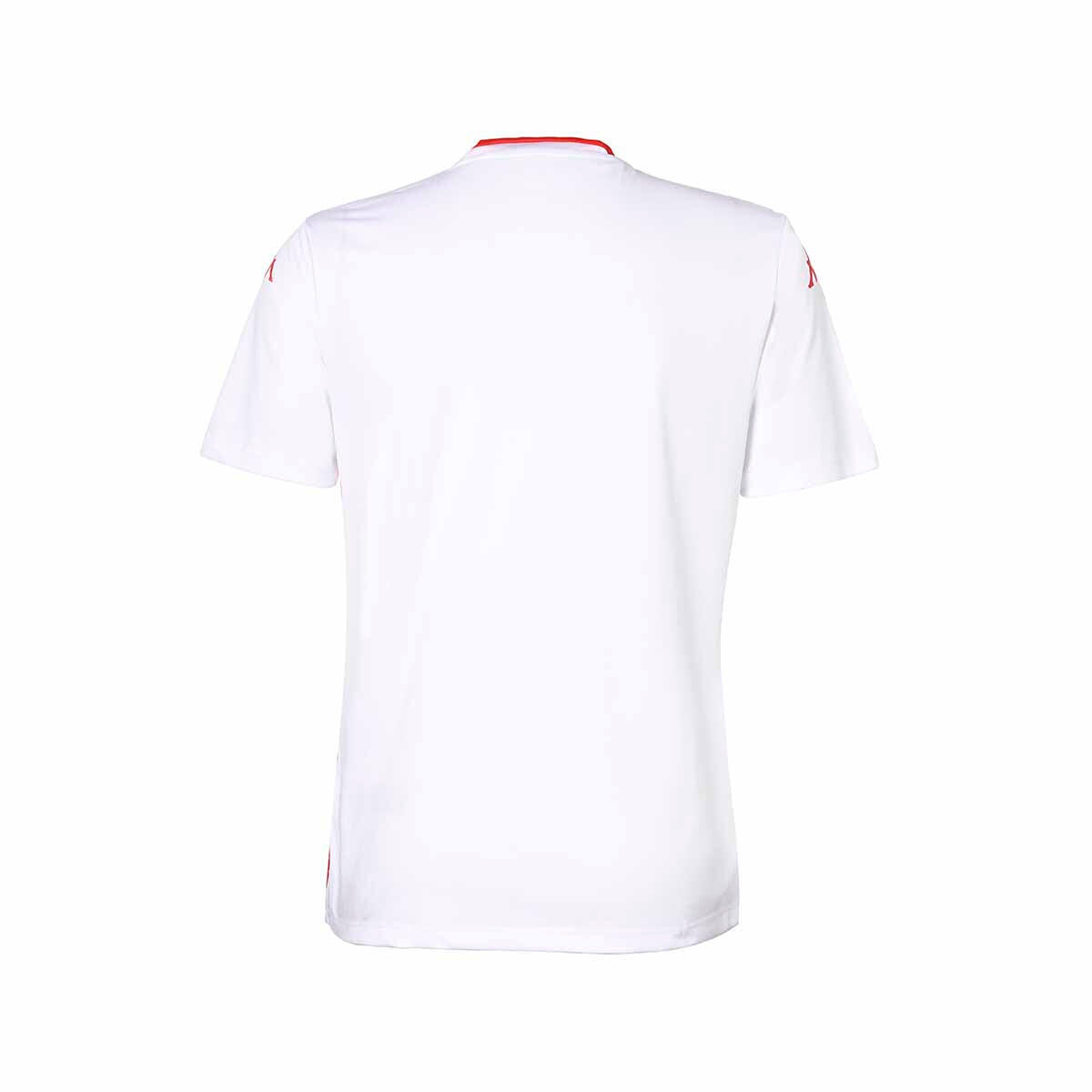 Play in style with the Maillot Kappa Bugo. SLIM FIT cut, short sleeves, round neck and sublimation-printed stripes for a trendy look!