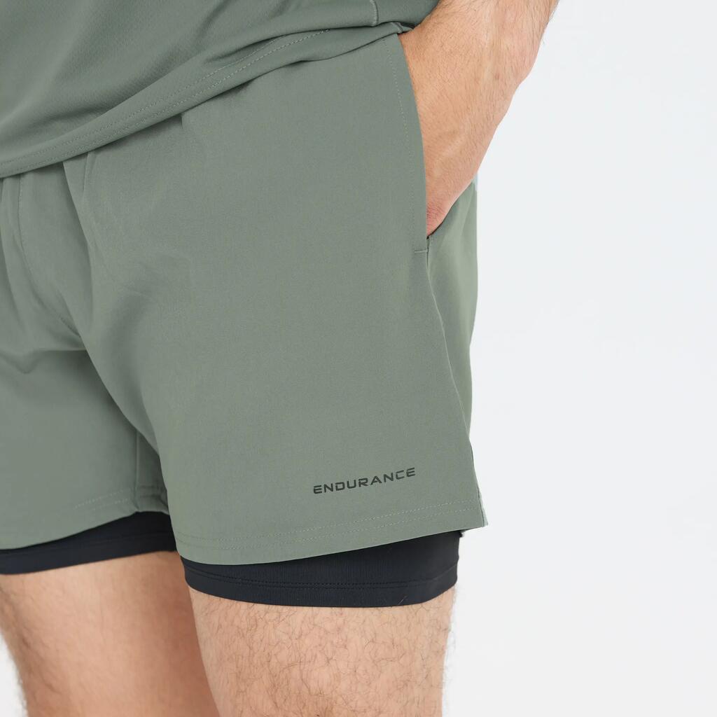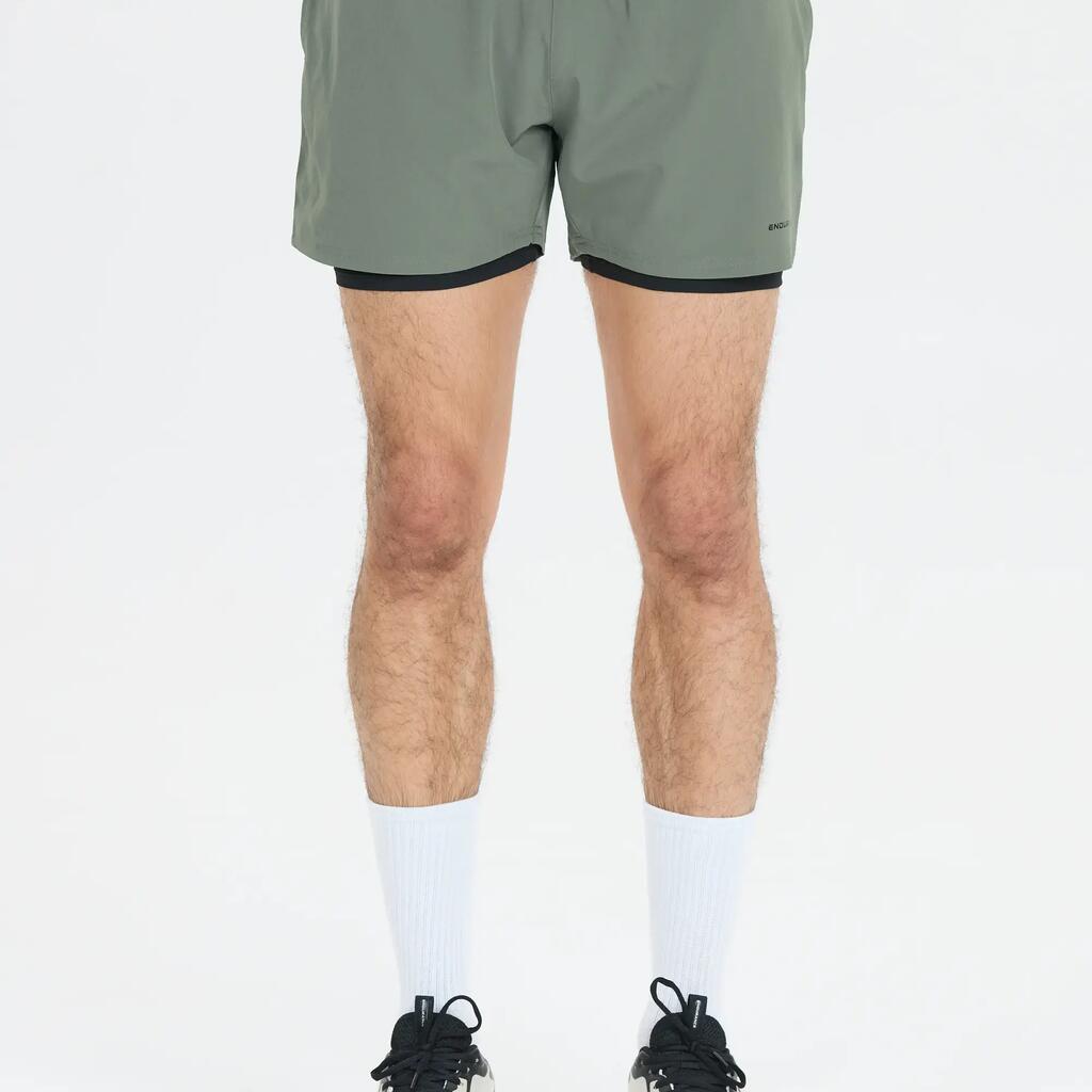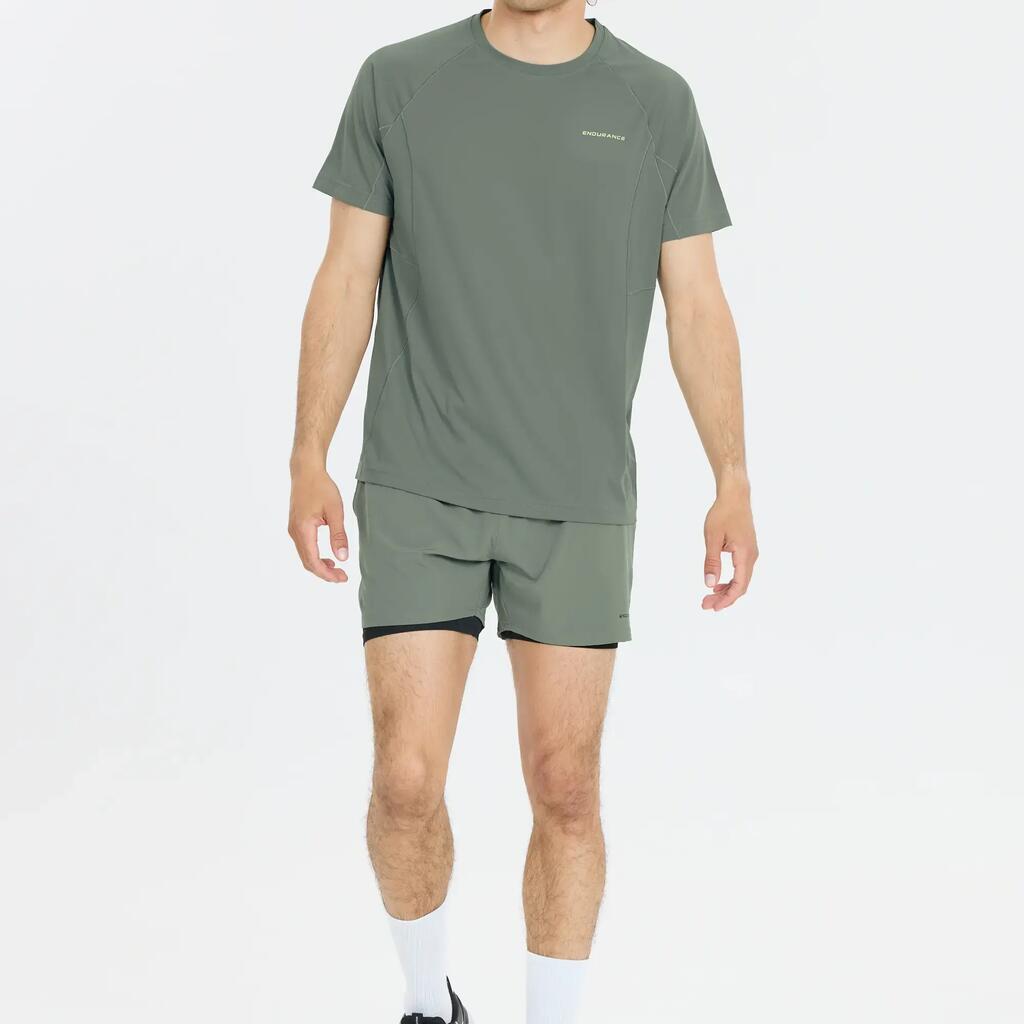 Discover the men's 2-in-1 running shorts "Kros" by Endurance, featuring a fitted cut and a compressive inner short for optimal running performance.