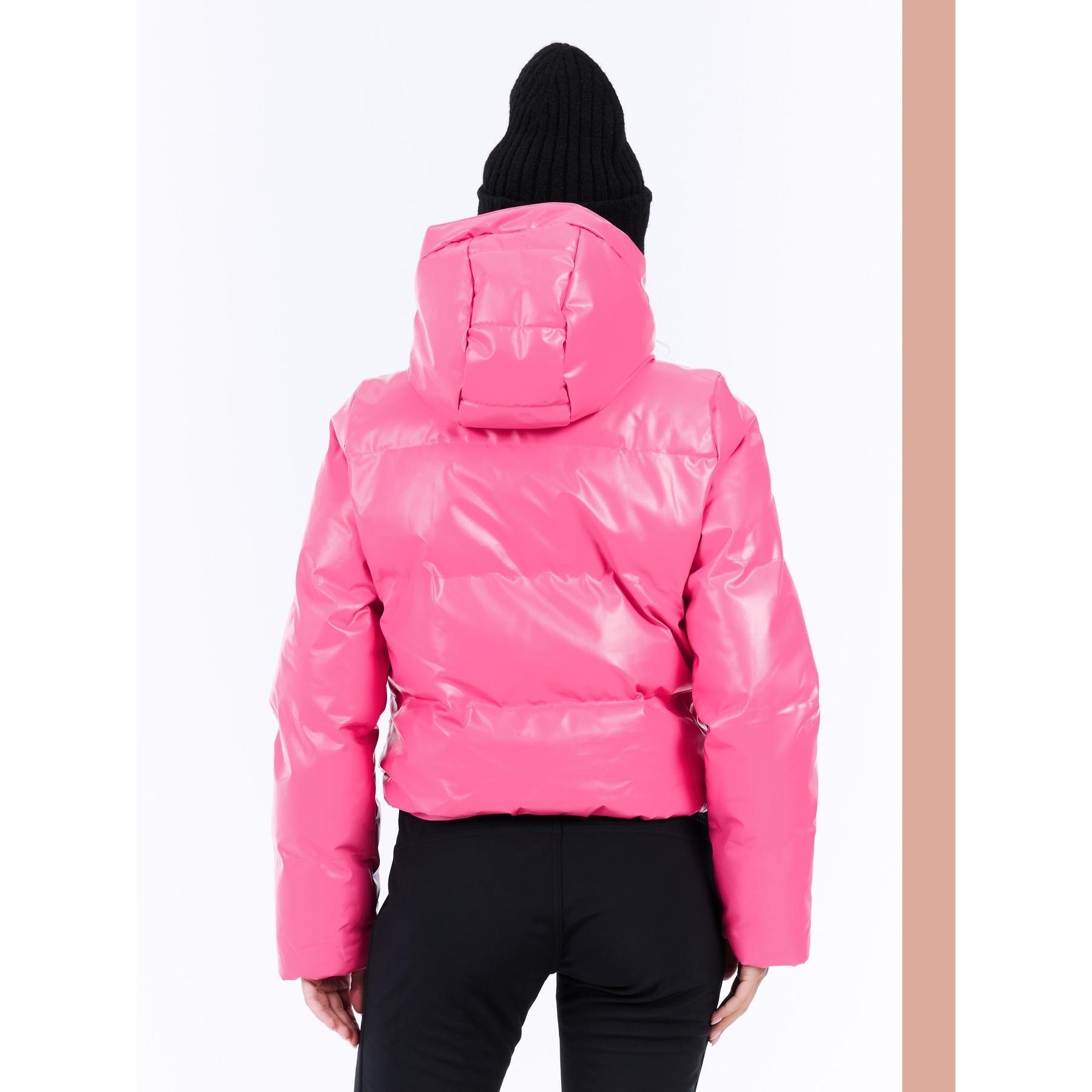 Recycled material, PVRE Green, Elastic, Durable water repellent finish without PFC, PU transfer, 10K, 10g, fitted cut, long sleeves, extra short length, regular collar, inner cuff with thumbhole, fixed hood, lift pass pocket, ski goggles pocket, full-length zipper, regular zipper, pocket zipper, Zip shift, internal placket