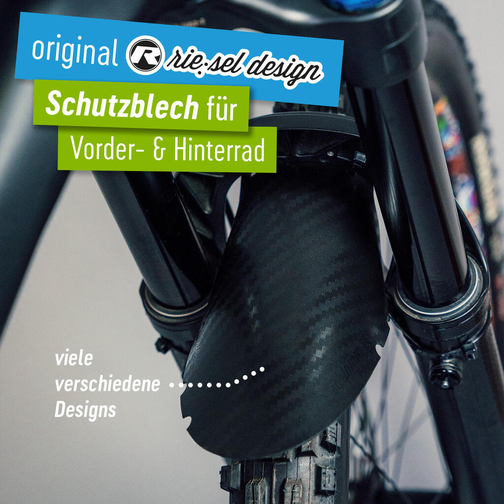 Optimize your mountain bike ride with the front mudguard Schlamm Pe from Riesel Design. Perfect for all types of mountain bikes, order it now!