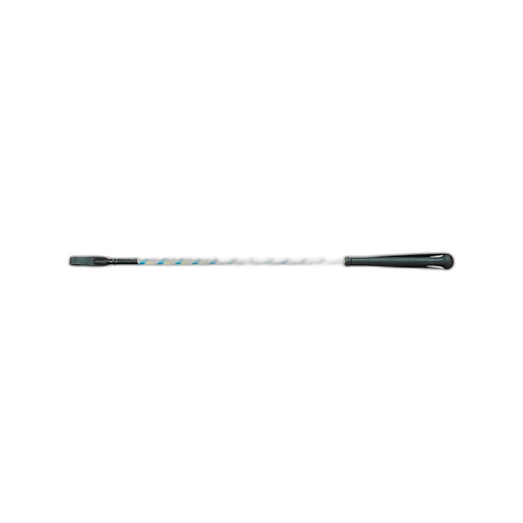 Discover the T de T whip, adorned with a tricolor ribbon and a shiny silver ribbon, with a non-slip handle for optimum grip.