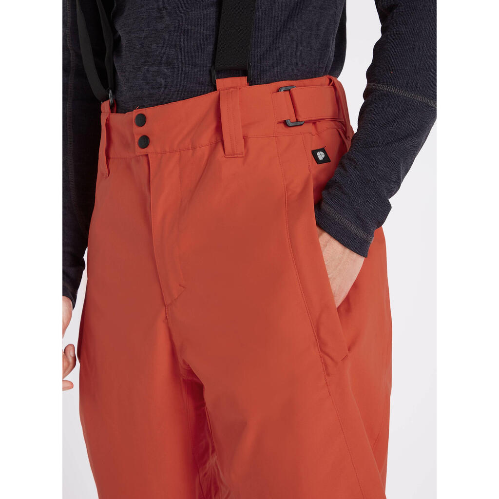 Discover the magnificent ski and snowboard Owens pants from Protest and their regular fit. Staying warm and dry is a priority if you want to spend long, beautiful days on the slopes. These brilliant pants boast 10,000 mm of waterproofing and 10 g of breathability. What does that mean? Water doesn't seep in from the outside, but moisture that accumulates inside the pants can escape through the fabric. Seams are taped in useful areas, another way for you to stay dry. Elastic suspenders help keep your pants in place, but can also be removed if you wish. The waist is adjustable with Velcro inserts. Ergonomically shaped legs give you added flexibility. Ankle zips make it easy to put on and take off your boots. These formidable pants are available in sizes up to XXXL, and in regular or short (SL) lengths. WithOwens from Protest, you'll only have to worry about one thing: hitting the slopes!