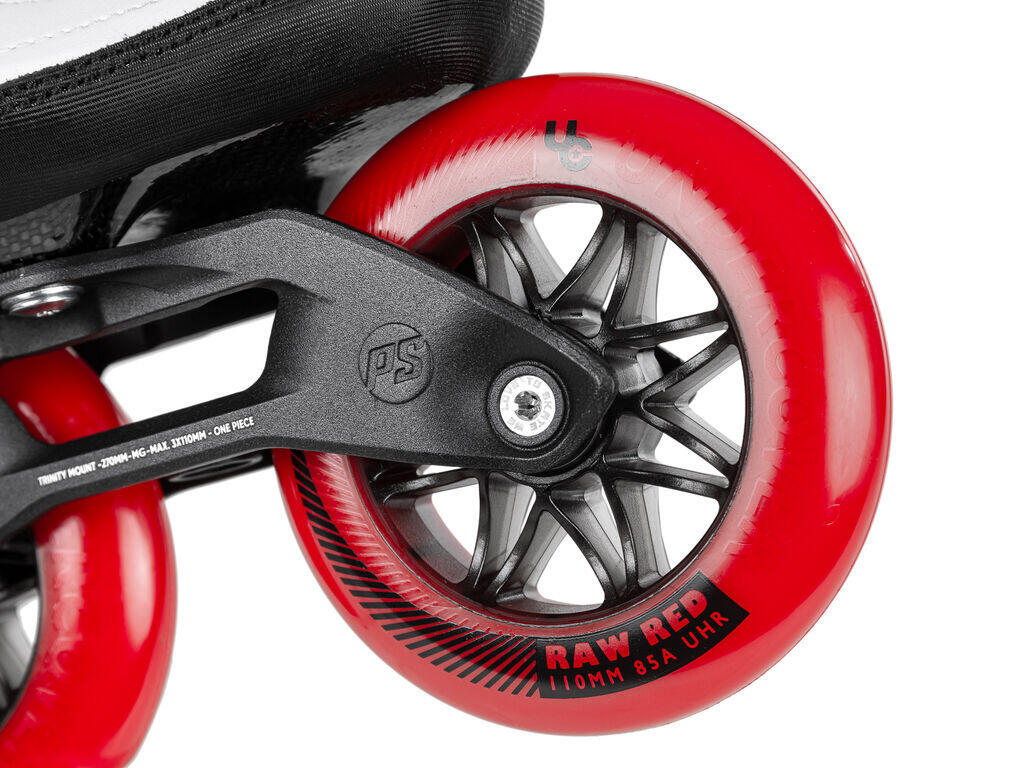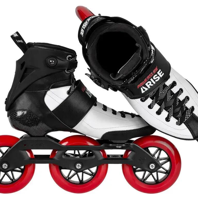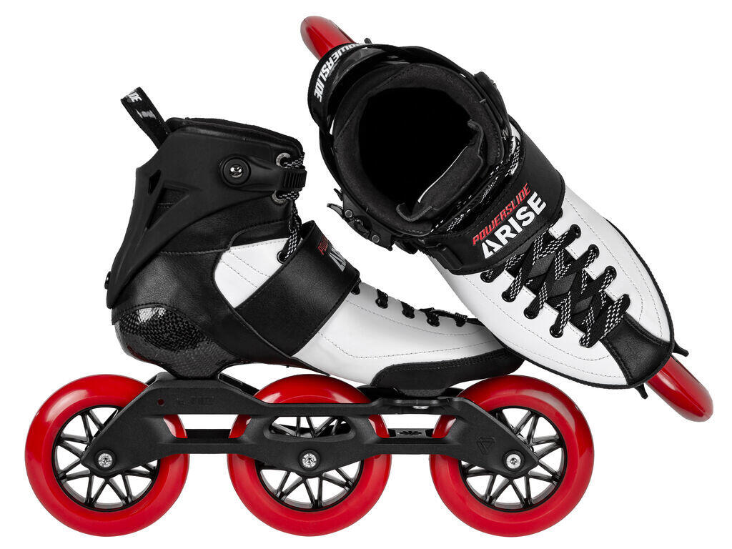 The POWERSLIDE Arise RD is an innovative, high-performance inline skate that combines the speed and precision of a high-end speed skate with the extra lateral support of a fitness skate. The result is a versatile skate that's perfectly at home winning marathons or simply strolling around town. The POWERSLIDE Arise RD features a solid, lightweight hybrid carbon shell for enhanced responsiveness. The skate is designed with a raised shoe and fiberglass-reinforced plastic cuff which, combined, offer superb support even at high speeds. Incorporating the renowned TRINITY 3-point binding system, the ARISE RD gives you a low center of gravity, fantastic stability and unrivalled control. The TRINITY system also allows you to adjust the position of your frame for optimum performance and to match your individual skating style. The Arise Road (RD) features a 270 mm magnesium frame POWERSLIDE Elite that represents the ideal balance between a long, speed-oriented racing frame and the agility of a high-end fitness skate. Mounted on 3x110 mm UNDERCOVER wheels and WICKED ABEC 9 bearings, the Arise RD is rapide, smooth and agile. Discover what's possible on inline skates with the Arise RD from POWERSLIDE.