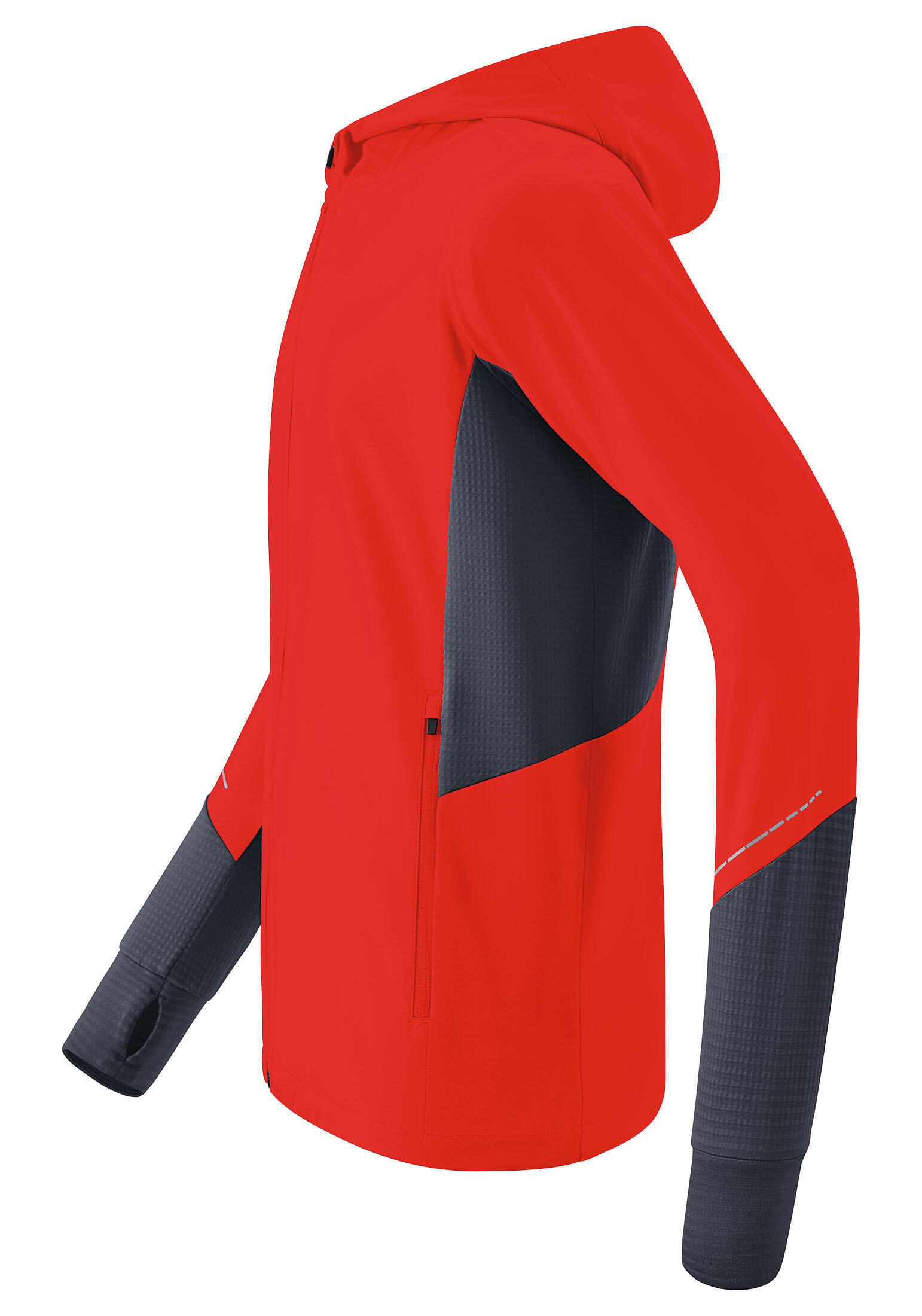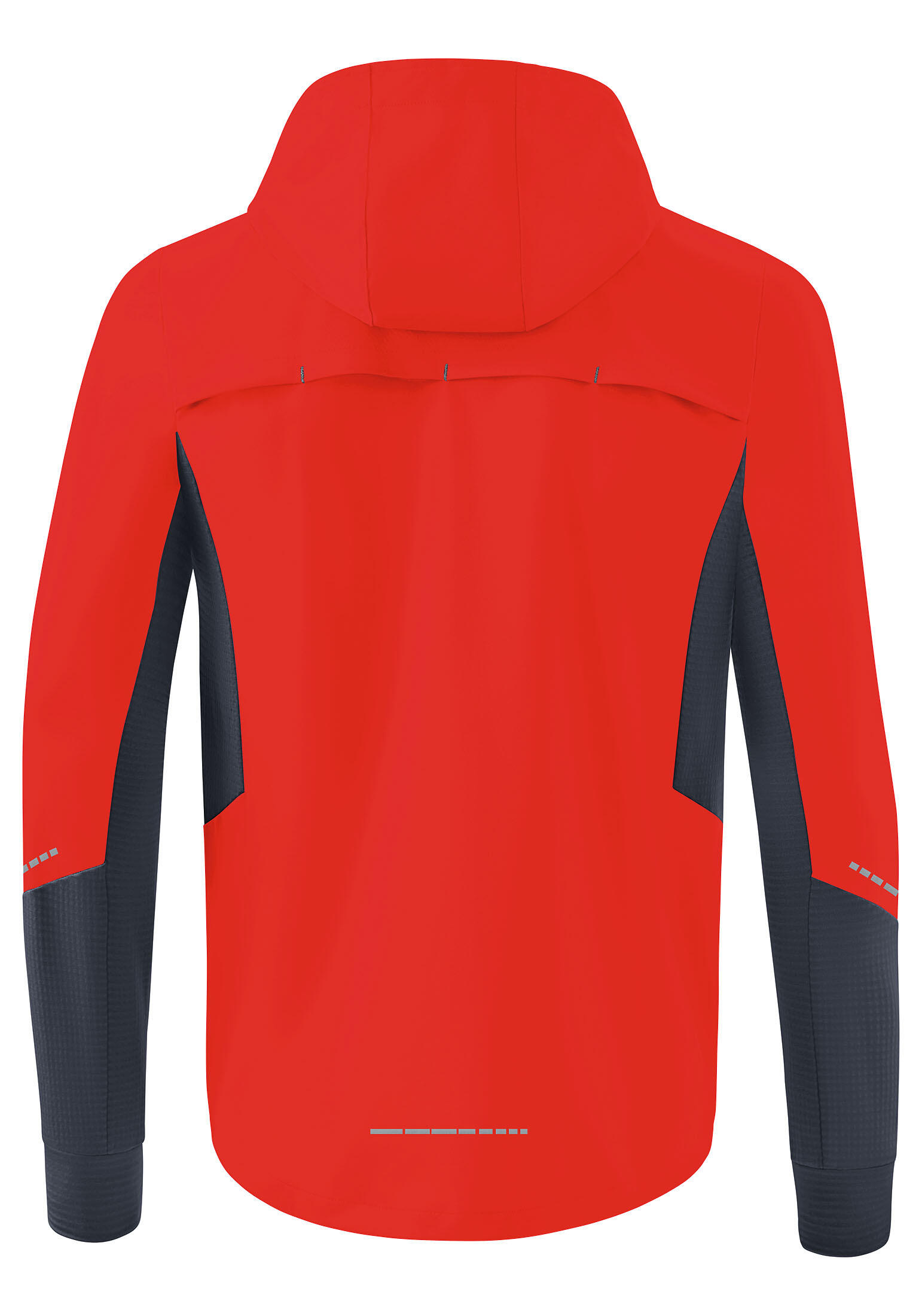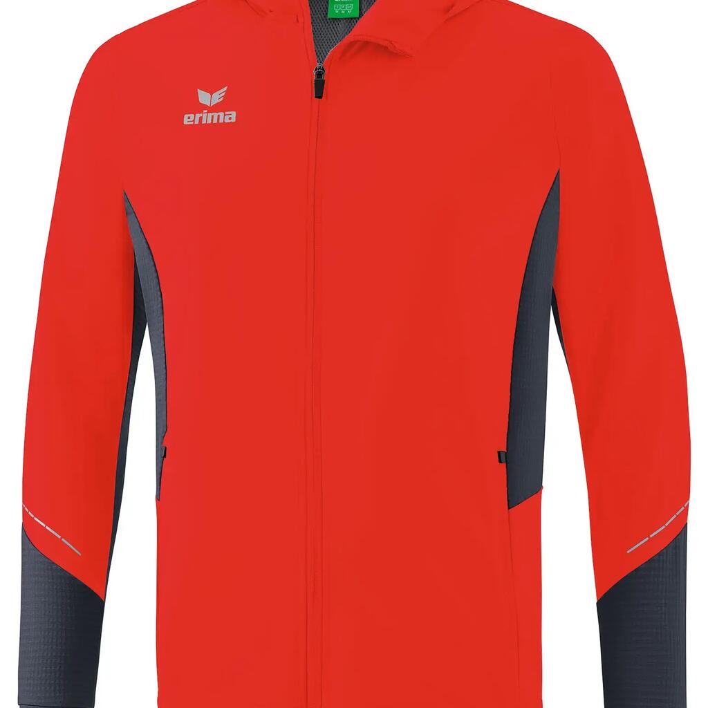 Light water-repellent running jacket with lots of practical extras. Very light water-repellent functional material; zip pockets at the side; reflectiv