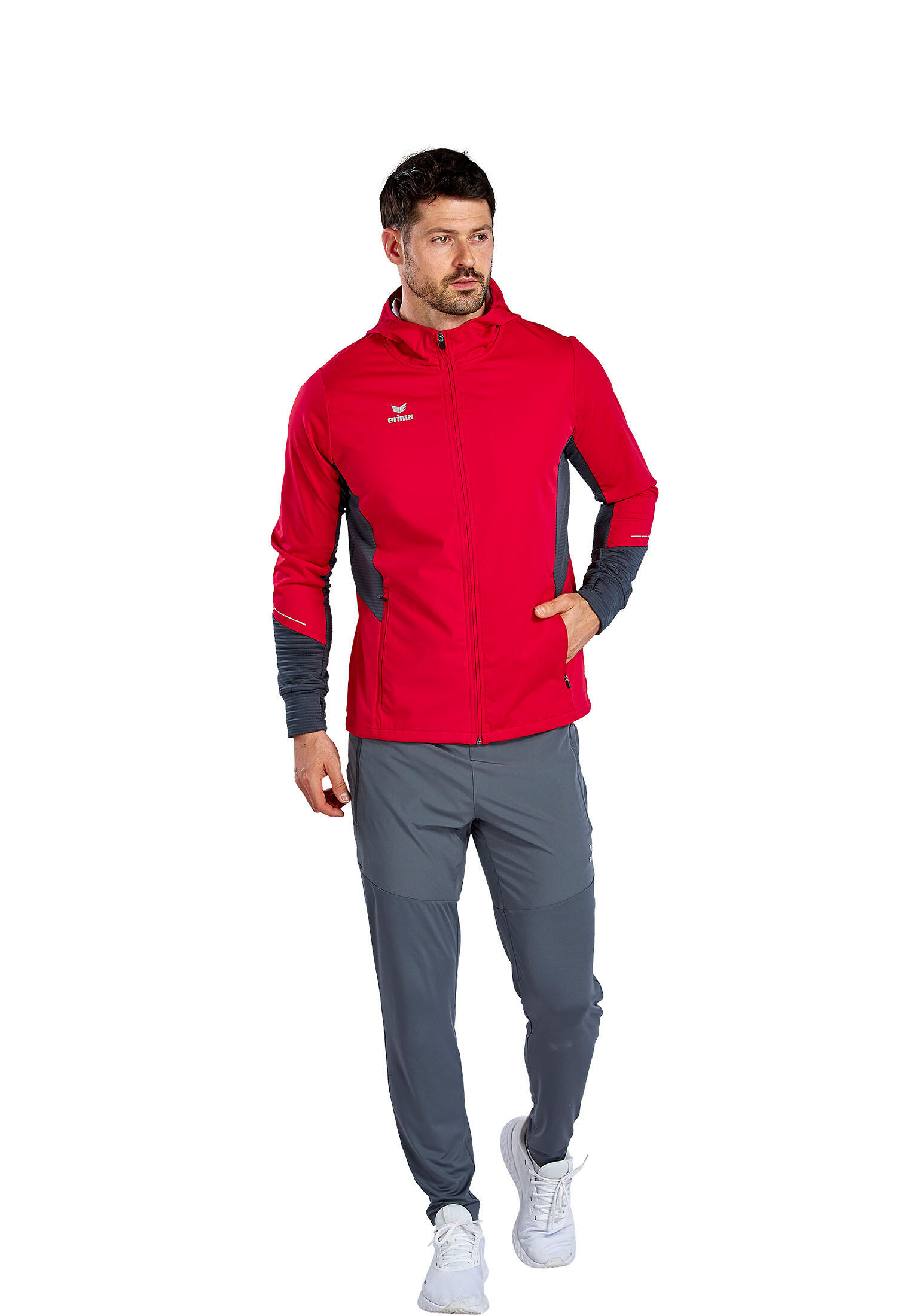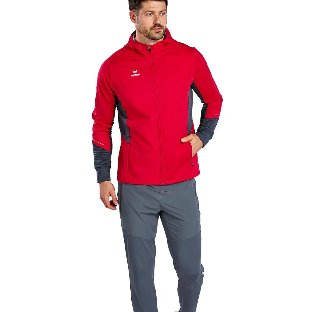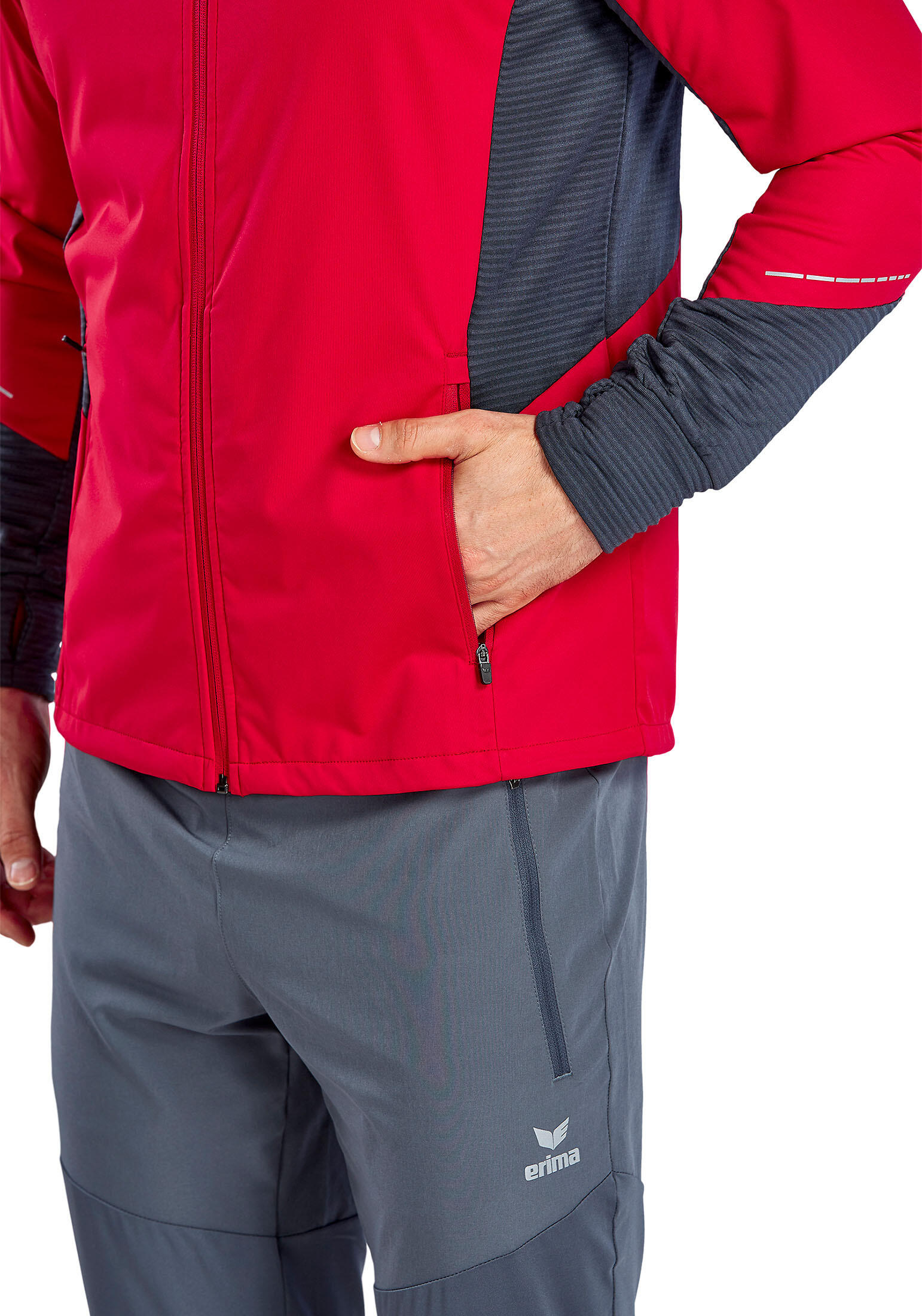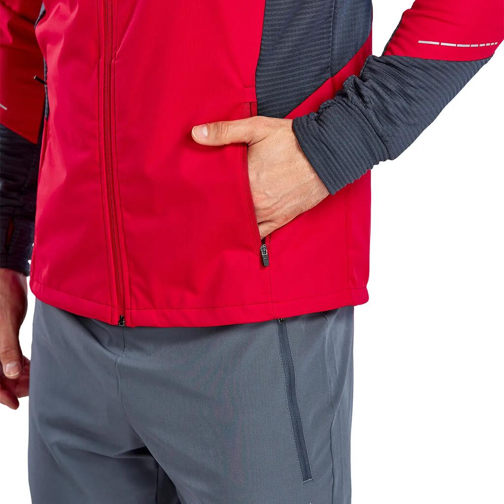 Light water-repellent running jacket with lots of practical extras. Very light water-repellent functional material; zip pockets at the side; reflectiv