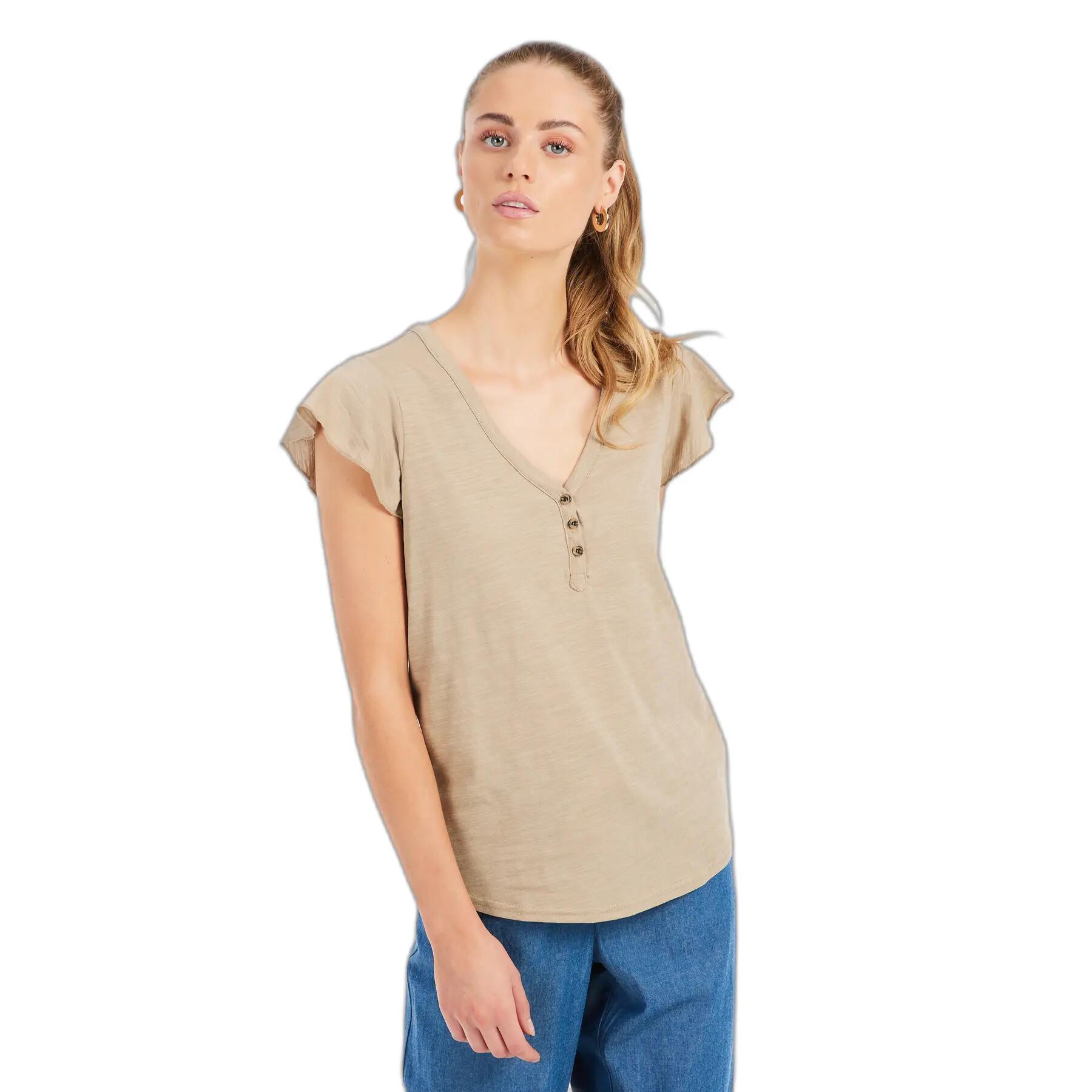 Discover the women's t-shirt Protest Kayla, combining elegance and comfort for a perfect look on sunny days.
