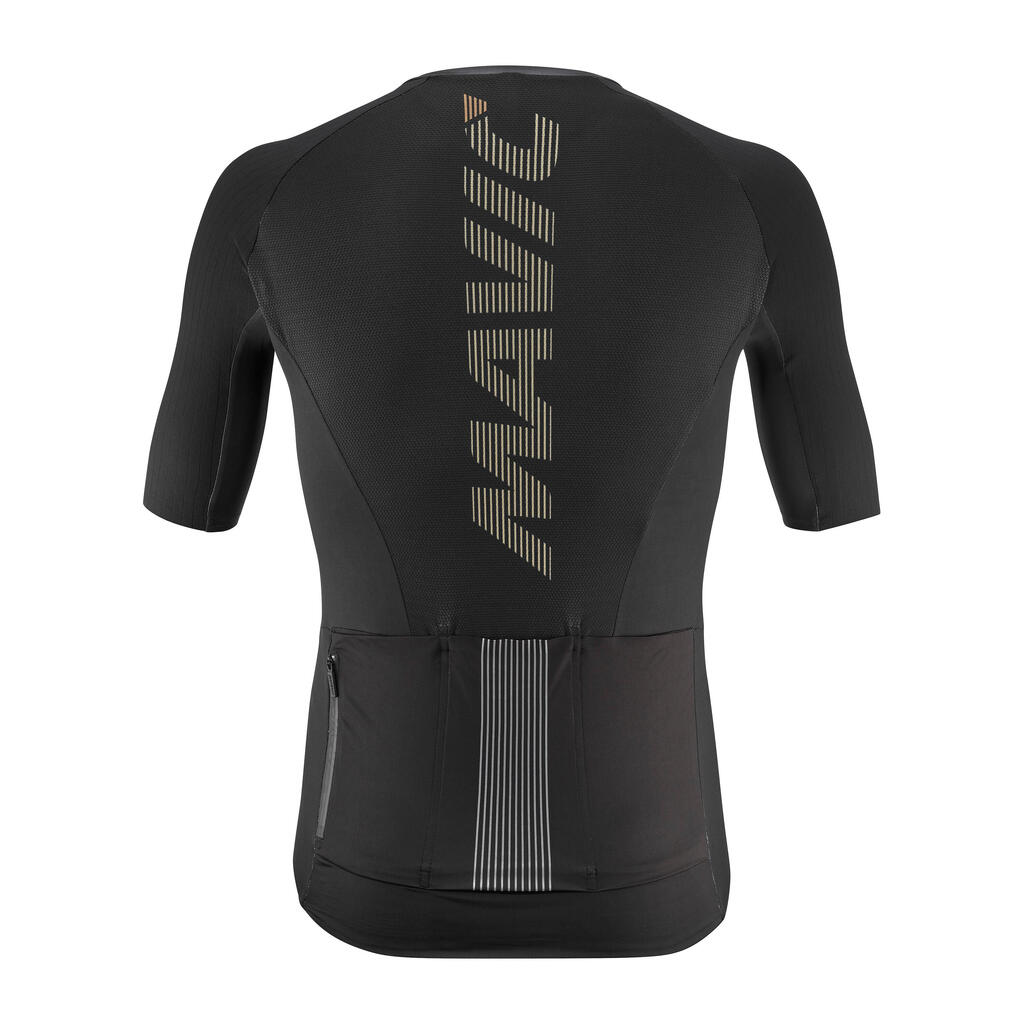 The cosmic jersey has been designed with a performance fit: a tighter cut like a second skin, and a shorter front zip that doesn’t compromise aerodynamics.