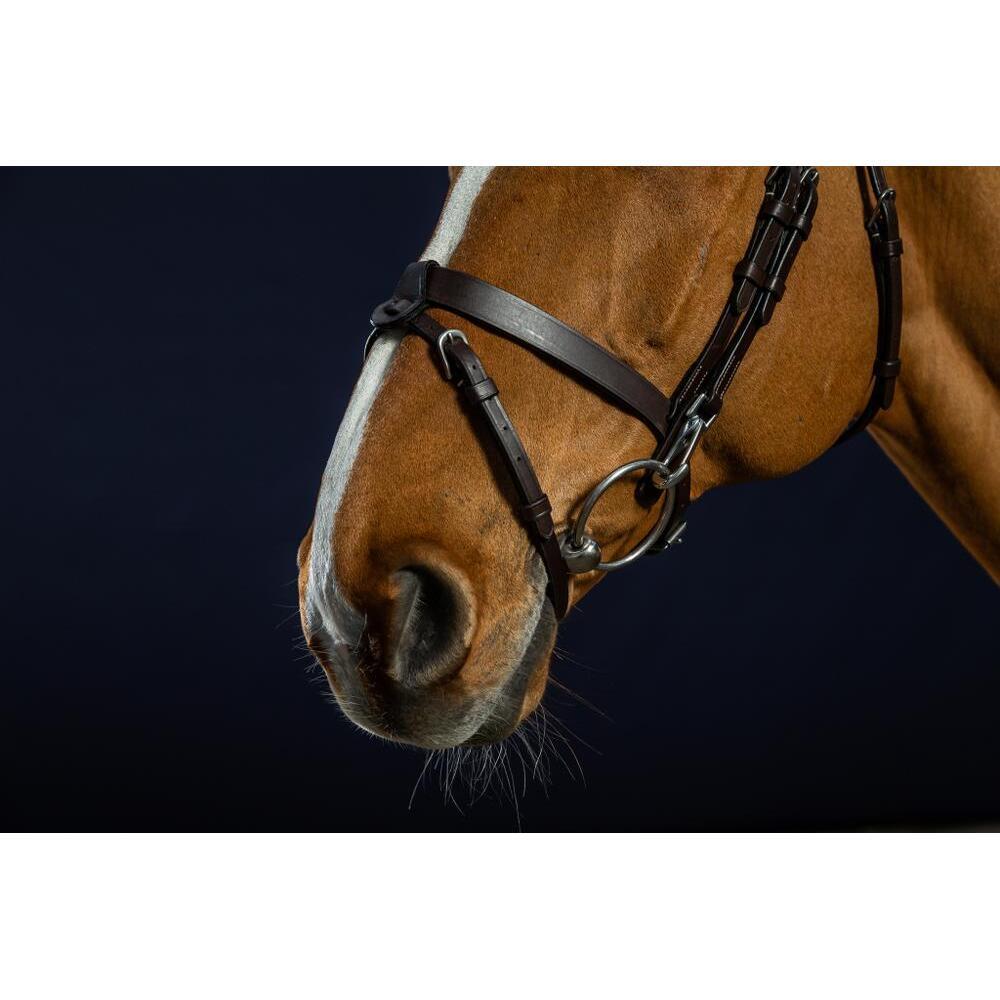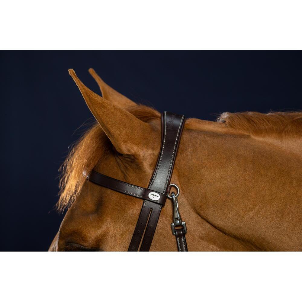 Treat your horse to a quality flat leather bridle with combination noseband and practical snap hooks, signed Dy’on for smooth riding.