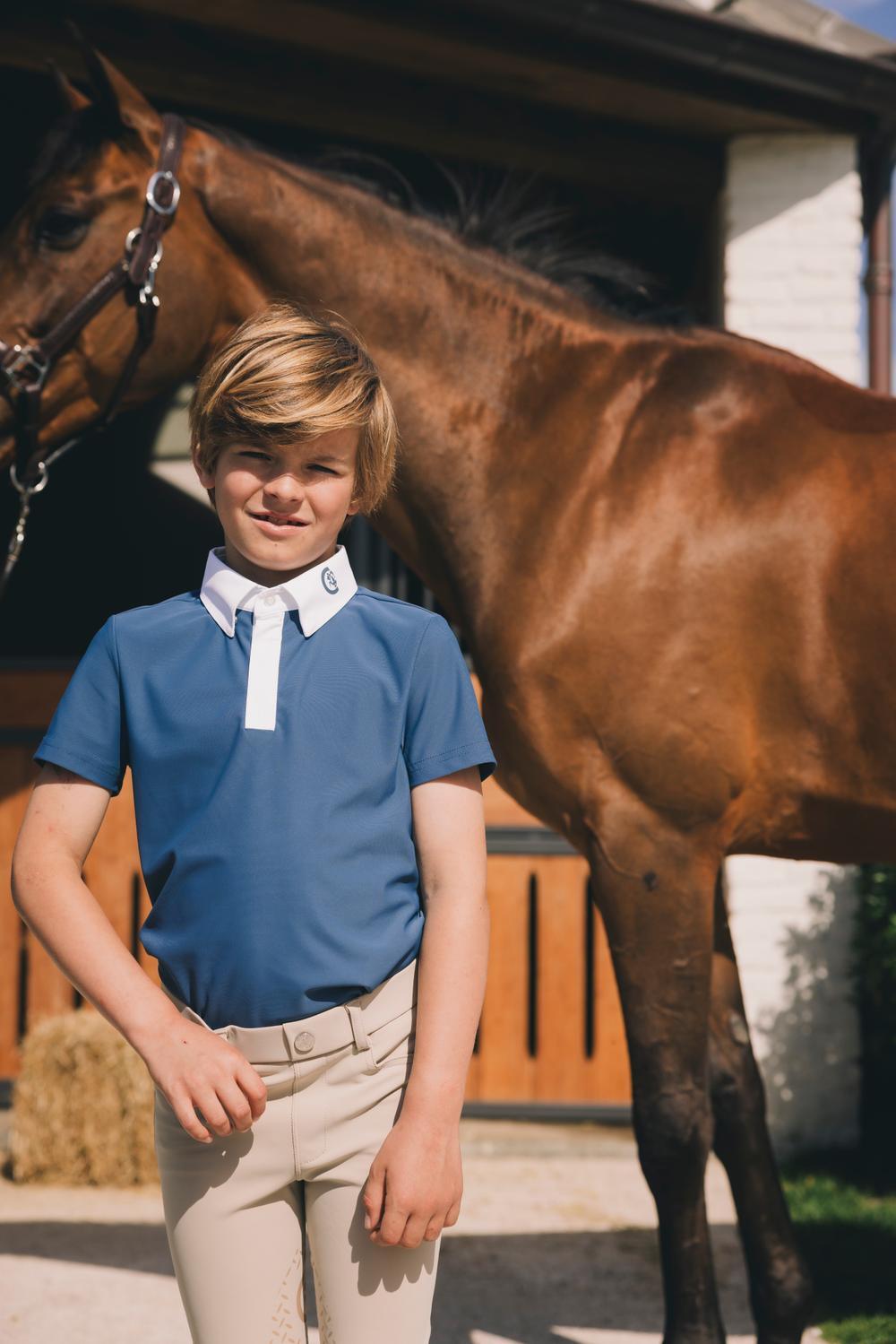 Designed for warm competition days ,this short sleeve show shirt offers young riders the elegance required in the ring with the comfort they need in the heat. With a tie collar ,discreet Kentucky