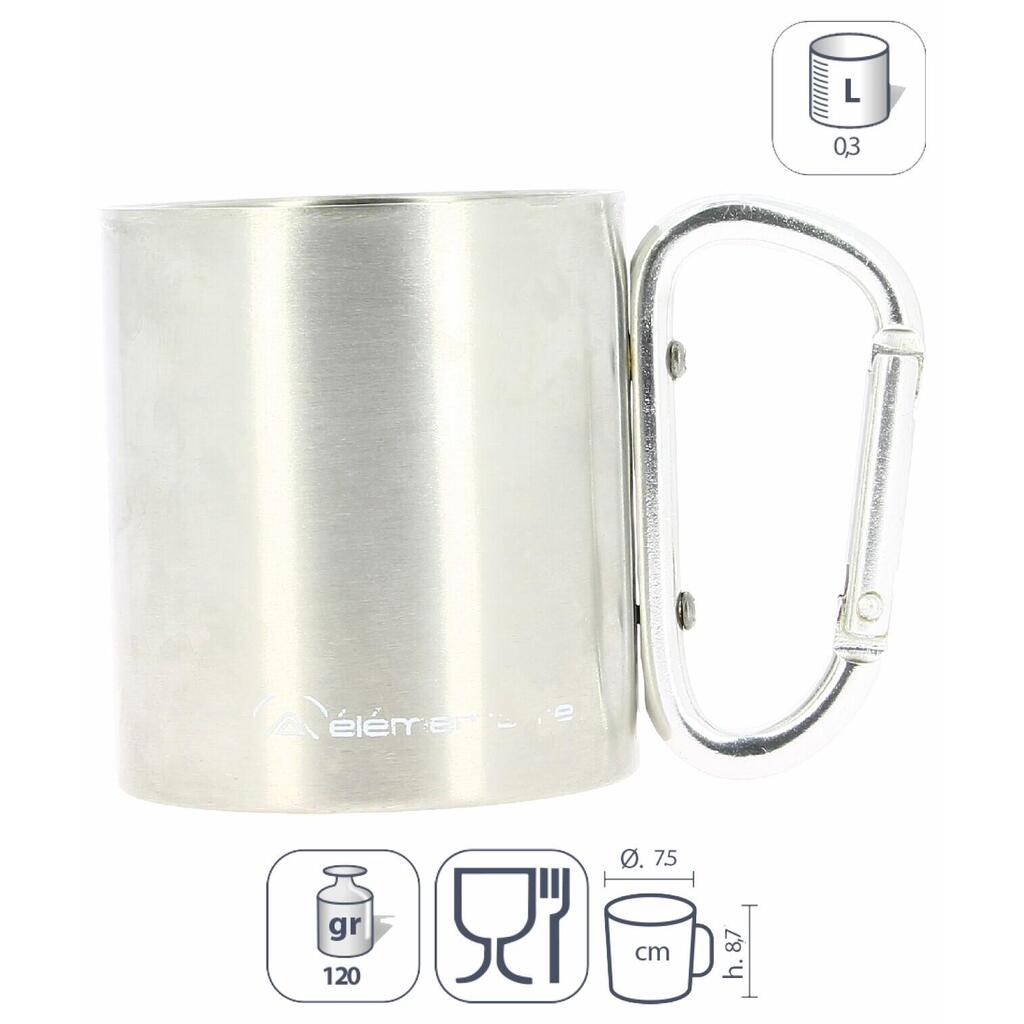 Discover the Elementerre Mahon steel mug, with its stainless steel double wall and carabiner handle for easy hanging rapide.