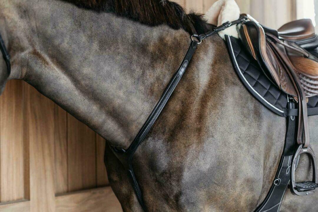This bridge hunting collar features 6 cm elastics on both sides of the breast for added comfort. Quick adjustments allow the hunting collar to be attached to the saddle. Easy to combine with a martingale.