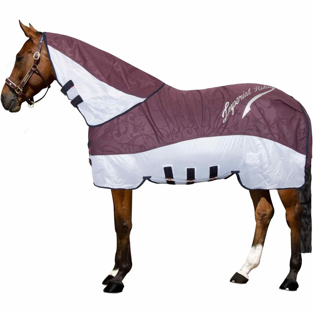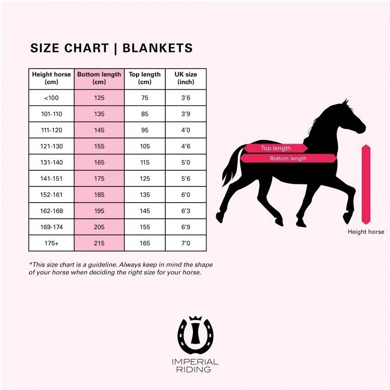 Never again doubt which blanket your horse should wear in spring and summer! In addition to its great comfort, this 2-in-1 rug also offers protection in a variety of weather conditions. During the occasional summer downpour, your horse stays dry thanks to the waterproof top layer (with the well-known Imperial Riding floral print!). What's more, the lightweight, breathable mesh material makes it the ideal fly cover. The blanket has a double ventral flap and is equipped with 3 straps, 2 elastic bands for the hindquarters, an ergonomic tail flap and leg gussets to guarantee maximum freedom of movement. Thanks to the buckle system and Velcro fastening on the chest, this rug stays perfectly in place. Conclusion: this waterproof, fly-proof rug is a real must-have for your horse! Note: the neck section is sold separately.