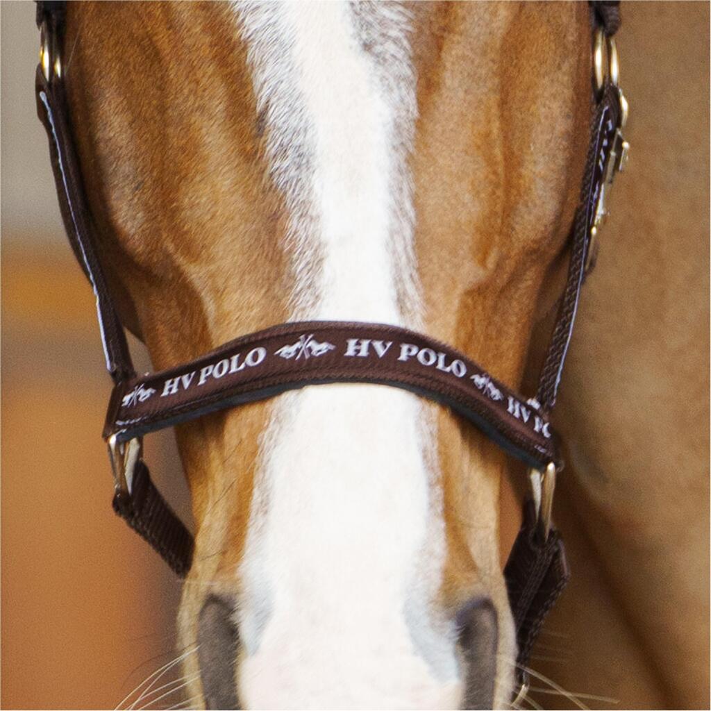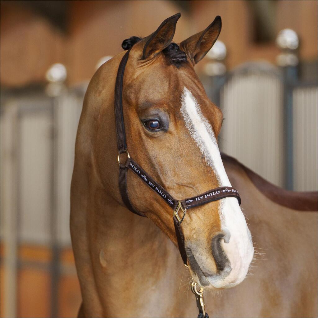 Basis halster met merklogotape op de bakstukken en op de neusriem . Zachte neopreen vulling onder het kopstuk en de neusriem. Kopstuk en neusriem zijn in maat verstelbaar