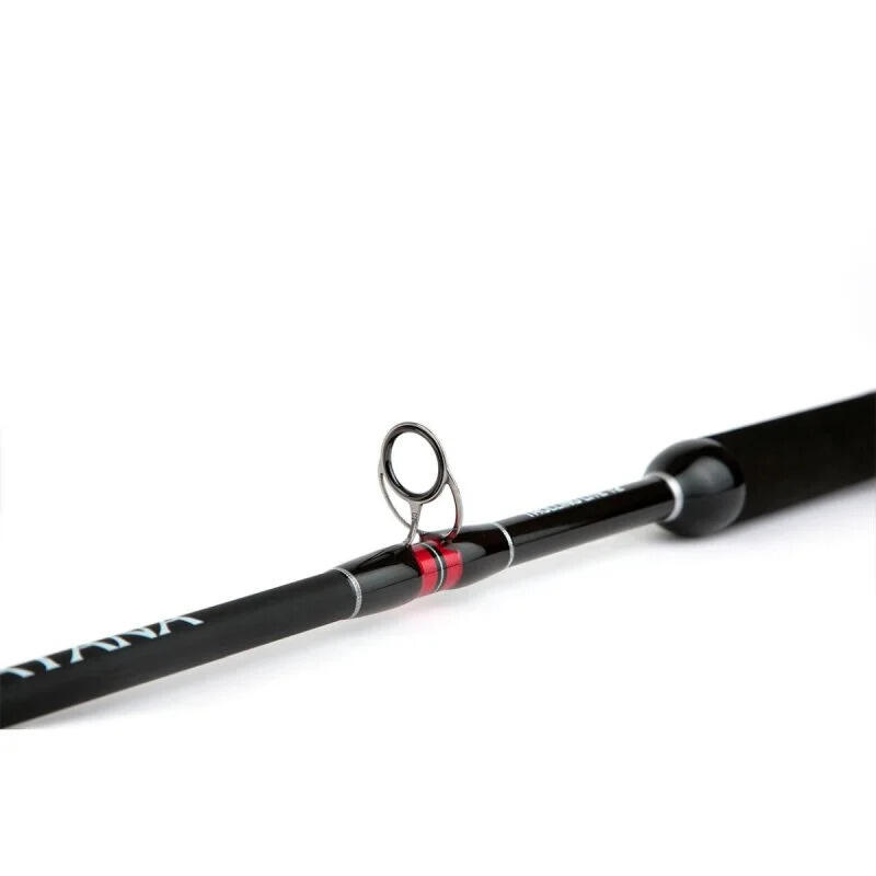 The Catana Trolling Lite is designed for trolling with live bait and small lures. It is available in four power ratings, from 6 to 20 lbs. The all-carbon blank is remarkably fine, very sensitive and has a semi-parabolic action to compensate for the use of light line. If you've never tried trolling with light line, you should give it a try - it's great fun and can be exceptionally effective for small pelagic species. Unfortunately, few charter boats offer this type of fishing, but with the price of a Catana Trolling Lite lower than that of a day's boat fishing, it's never been easier for you to own your own specialized rod. And if you have access to a small boat, try trolling for smaller species such as sea bass, bonito and even mackerel.The Catana Trolling Lite is made from Full Carbon, which explains why the blank is so thin and feels so light and responsive. In the lighter versions, the semi-parabolic action is great fun to use, while the more powerful models have plenty of power for medium-sized pelagic species. Interestingly, Seaguide's stainless steel rings are 'spiral-mounted' on the blank. This configuration, which is significantly different from that of a traditional ring mounting, the so-called 'Brazilian' spiral mounting - the rings are mounted by rotating them around the blank. This has the advantage of making the blank more stable when fighting fish. The result is better line movement and more fighting action pure. A lightweight aluminium reel seat complements the EVA front handle and ensures maximum comfort and safety when fighting big fish.