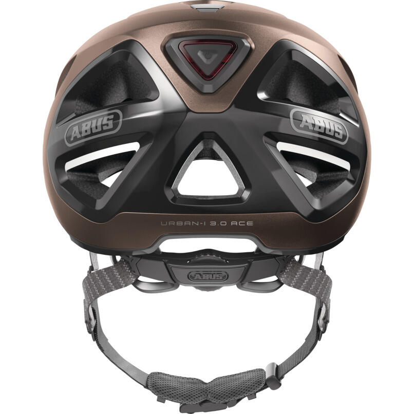 SPORTY CITY HELMET The 3rd generation of our most popular city helmet is updated: The Urban-I 3.0 ACE awaits its next adventure with four new features. Thanks to the TriVider, a significantly larger visor and a reworked shell concept, the urban helmet in its ACE version now has a distinctly sportier look. The extended visor gives the Urban-I 3.0 ACE a touch of mountain bike dynamism for your next ride around town. The TriVider harness system also reinforces the helmet's sporty character. Its three outer shells allow refined design enhancements: one of the robust polycarbonate outer shells, for example, is placed on the lower edge of the usual helmet, ideally complementing its appearance. In city traffic, which is often lightly laden, the modified LED taillights are a great help: The helmet and its wearer are even more visible to autres road users thanks to the doubling of the number of LEDs in the ACE version. In addition, the rear light with 180° visibility can be easily recharged via USB. With the Urban-I 3.0 ACE, there's nothing to stop you getting to the office or out on the town.