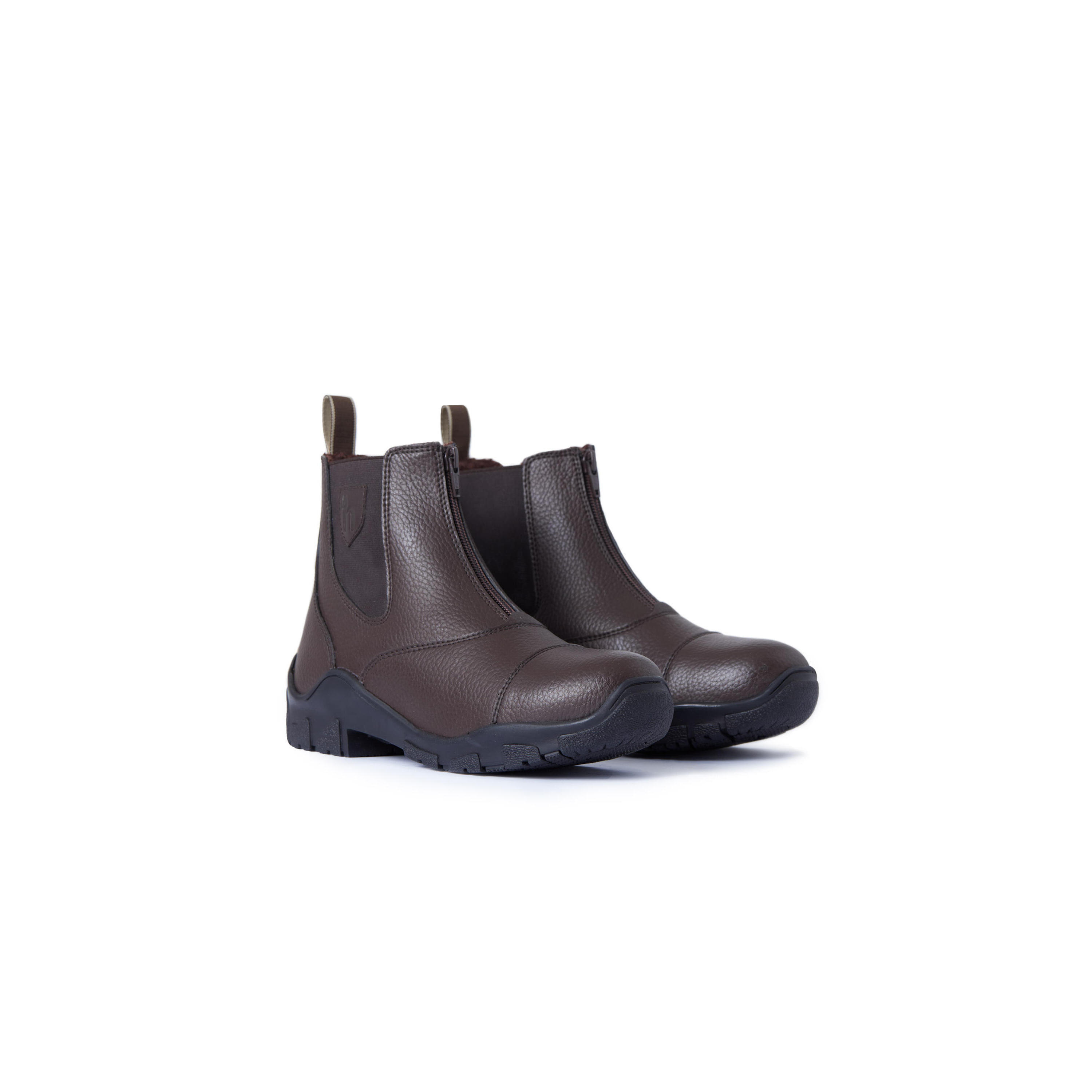 Keep your feet warm all winter long with these lined jodhpurs.you won't have to choose between style and comfort with these extra booties, made from soft, textured PU leather that looks great and is easy to care for. Put these boots on quickly before heading to the stables, using the convenient front zipper, pull tab and elasticated side panels. They're ideal for all winter weather variations, including rain, sleet and snow. The super grippy sole helps you stay firm on both legs, even on treacherous terrain. The Horze logo is proudly stamped on the leather on both sides, putting a finishing touch on the boots. Be sure to take on the elements with confidence in the winter-specific Horze Idaho jodhpurs booties.Features:Super warmLined with lightweight furWaterproofYKK zipper frontElastic side panelsLogo stamped into the leather on the sideGripy, non-insulated outsoleEasy slip-on buckleSmall heelIn durable, textured PU leatherComfortableTechnical description:100% PU leather.Washing Instructions:Clean with a clean damp sponge after use to remove perspiration and dirt. Wipe with a clean cloth.
