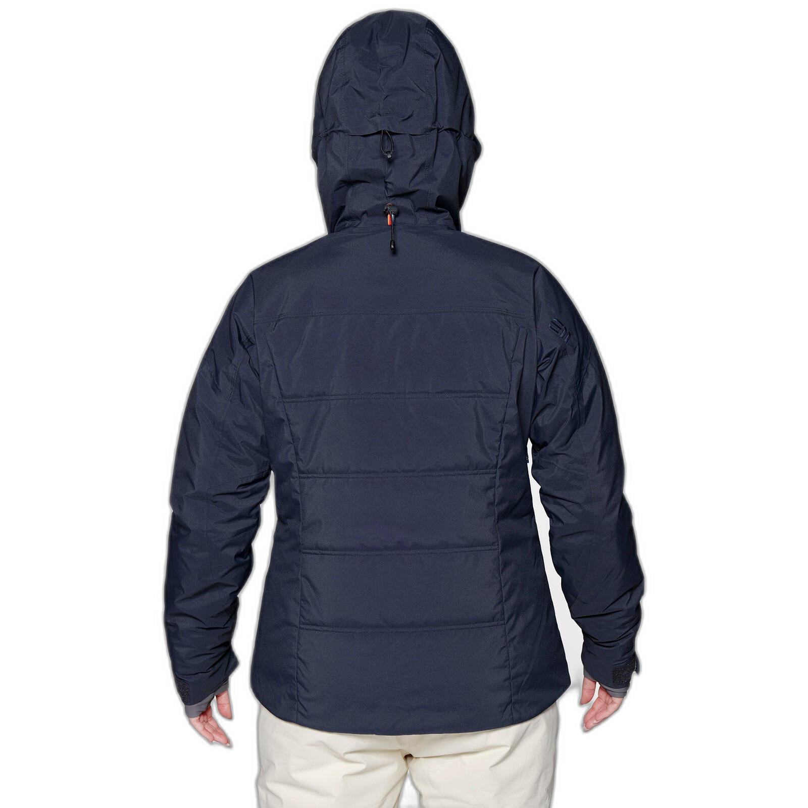 - Pre-shaped sleeves and asymmetrical cuffs that fit over ski gloves.