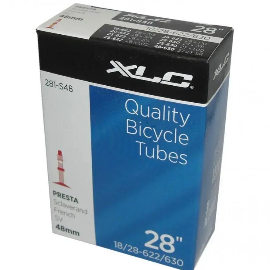A XLC tube designed for 28" wheels with a Presta valve available in three lengths to fit different road tires.