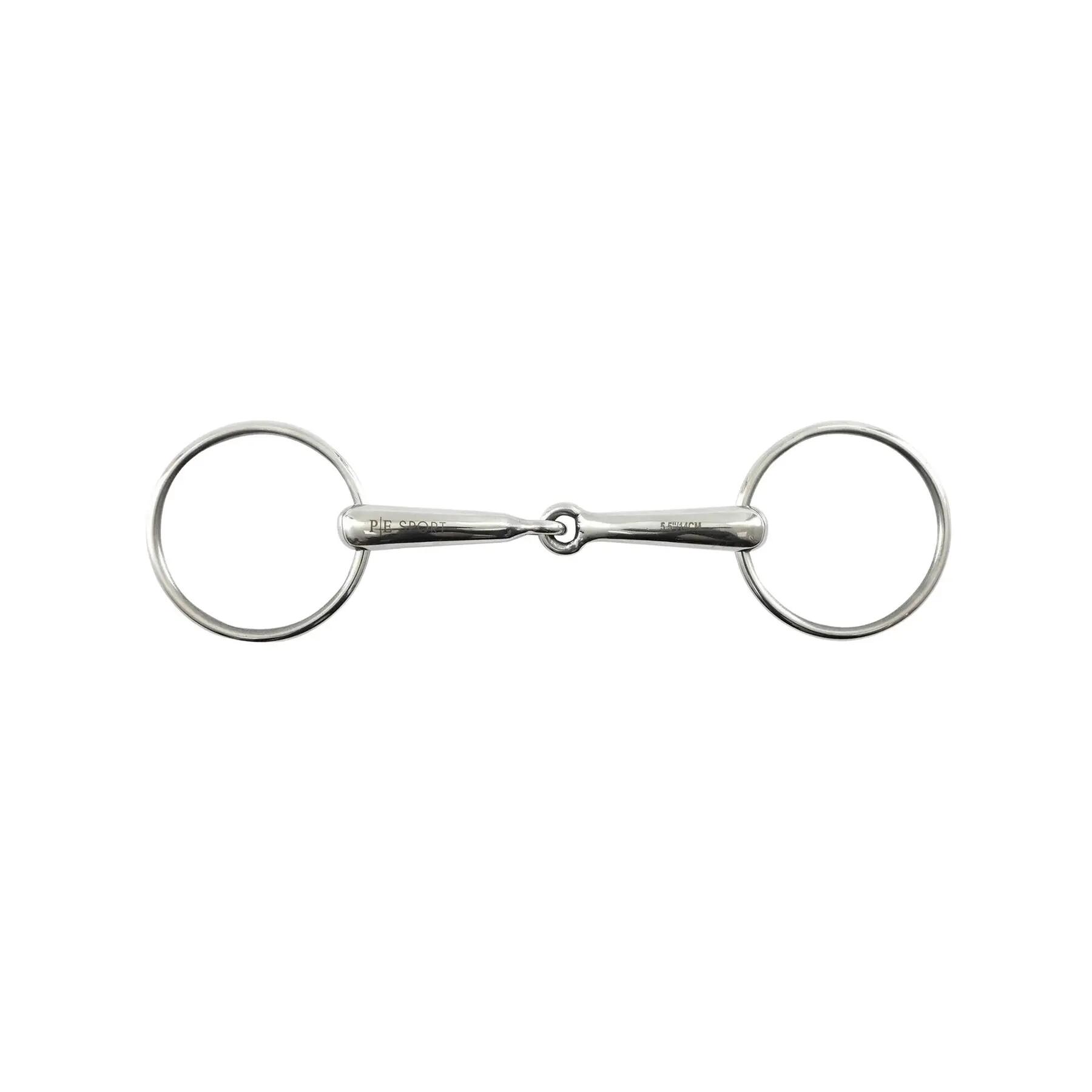The Hollow Mouth Racing Bit is extremely lightweight and has large rings, making it especially useful for preventing the bit from being pulled through the horse's mouth. A unique center joint creates a nutcracker action that puts pressure on the bars of the mouth and lips for easy control. Loose ring cheeks are ideal for horses that lean or tend to settle on the bit, as they are very mobile. This snaffle is perfect for racehorses in daily training or for those who need a very lightweight loose ring snaffle.