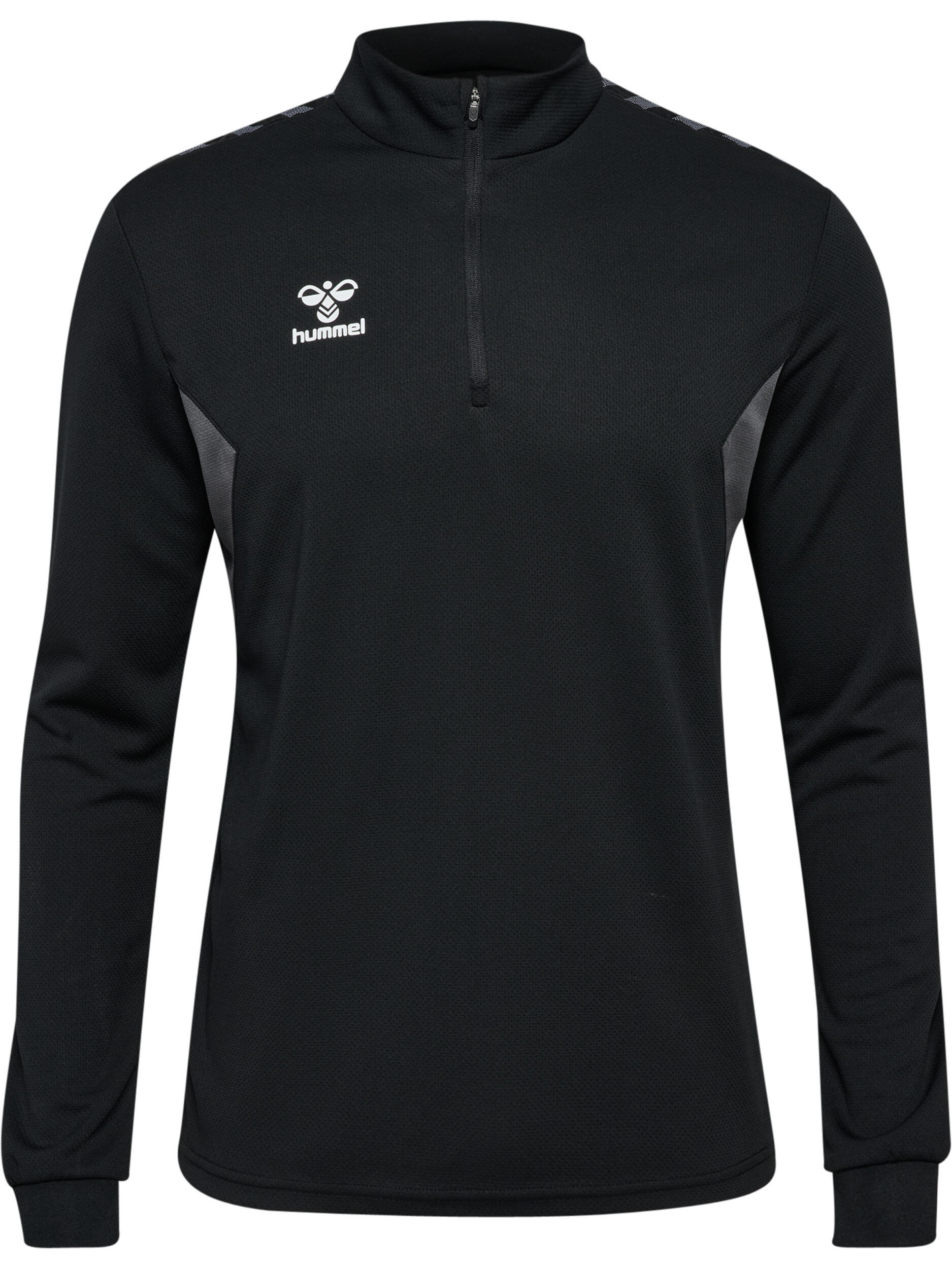 Comfort and style come together in the Hummel Authentic half-zip jacket, in jacquard with printed logos and signature shoulder stripe.