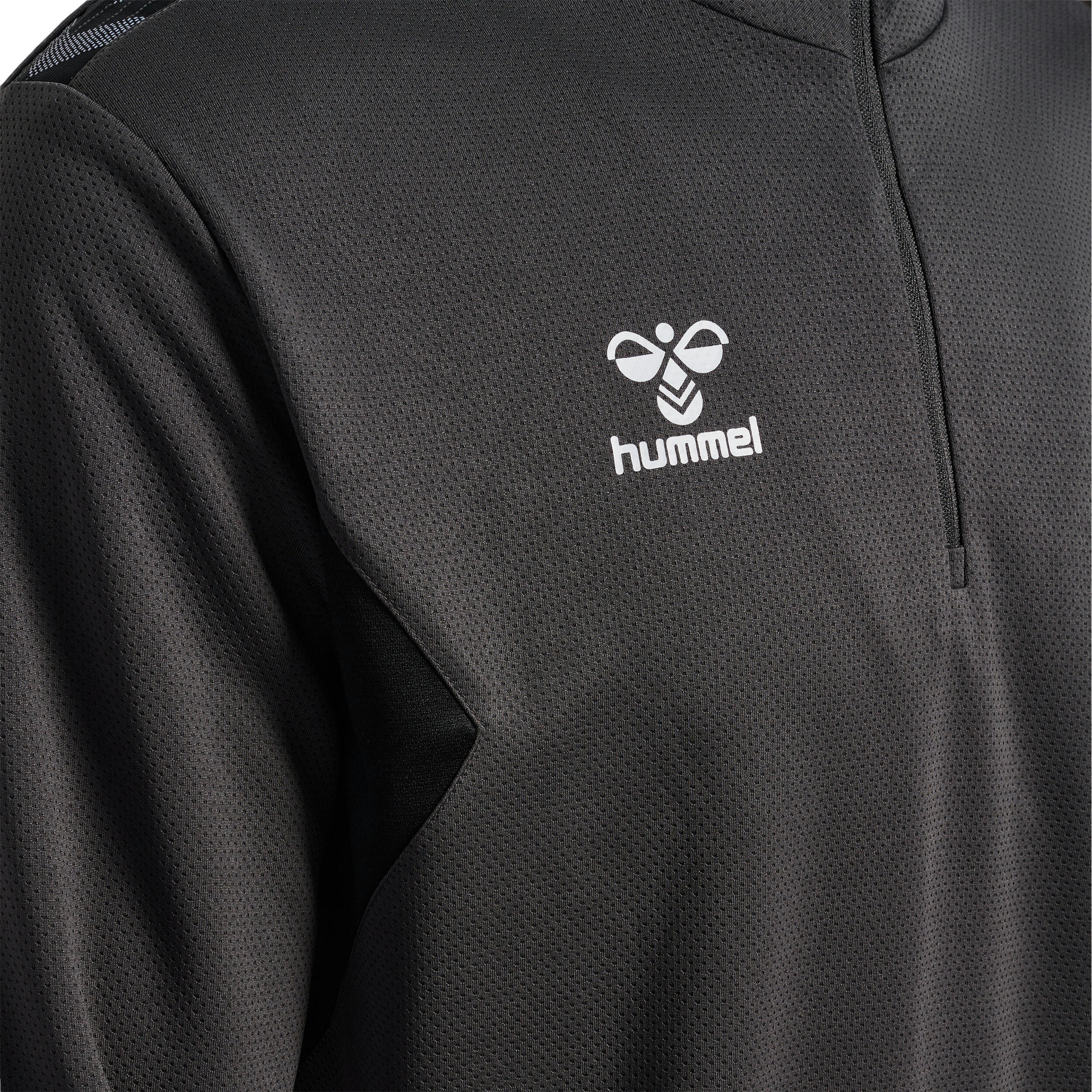 Comfort and style come together in the Hummel Authentic half-zip jacket, in jacquard with printed logos and signature shoulder stripe.