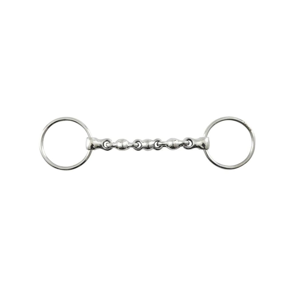 The Waterford Mouthpiece is made up of a series of ball-shaped links, which makes it completely mobile in all directions. It is particularly popular for problems such as leaning, biting and jaw lock. When the horse tries to grab the bit, the mouthpiece collapses, leaving the horse with no rigid grip.