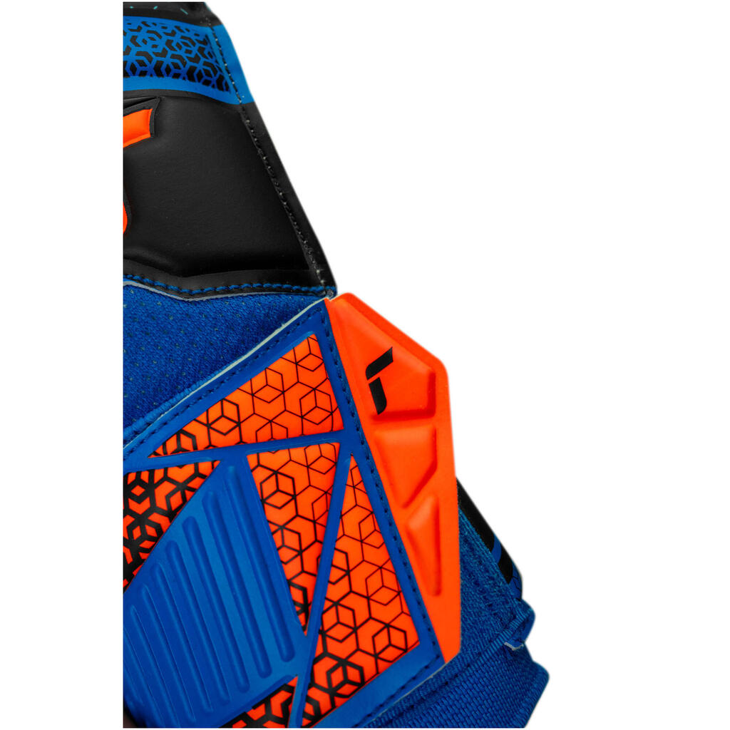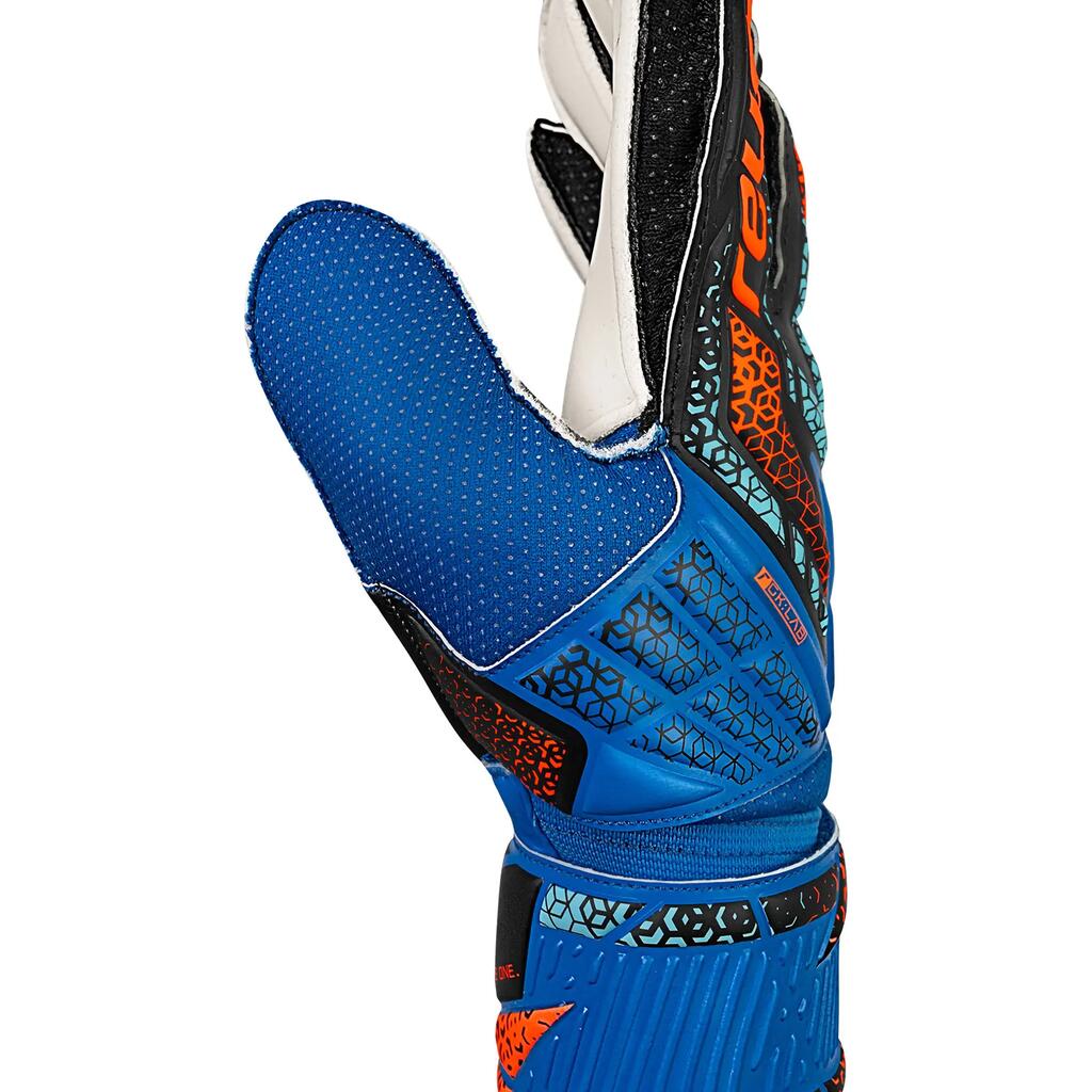 Durable gloves for amateur goalkeepers, designed for artificial grass and hard pitches, with Reusch Solid foam, synthetic latex, and ThumbFlex technology for optimal flexibility.