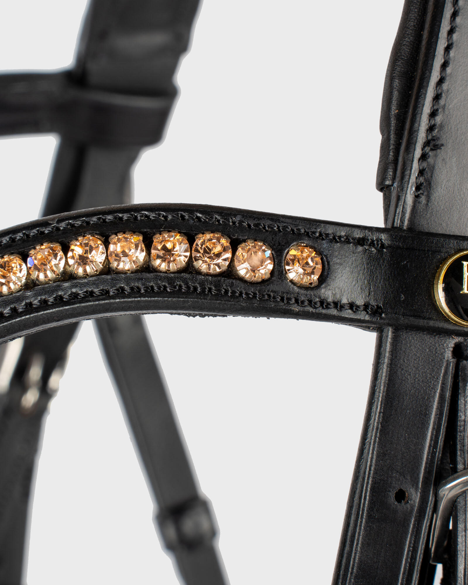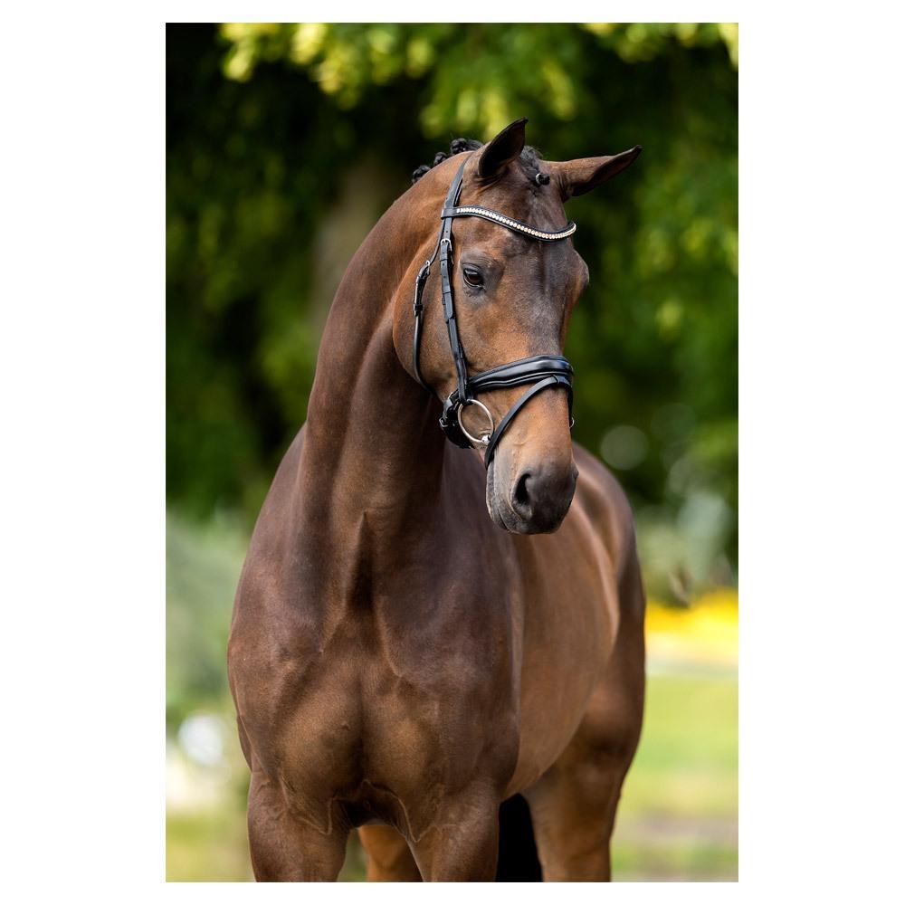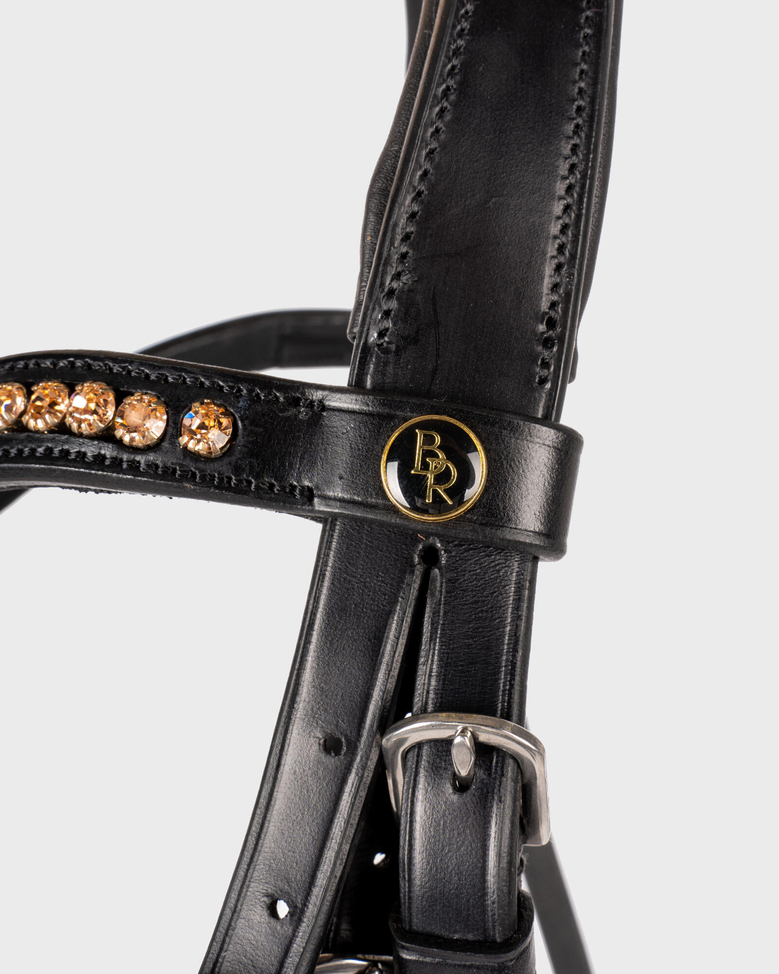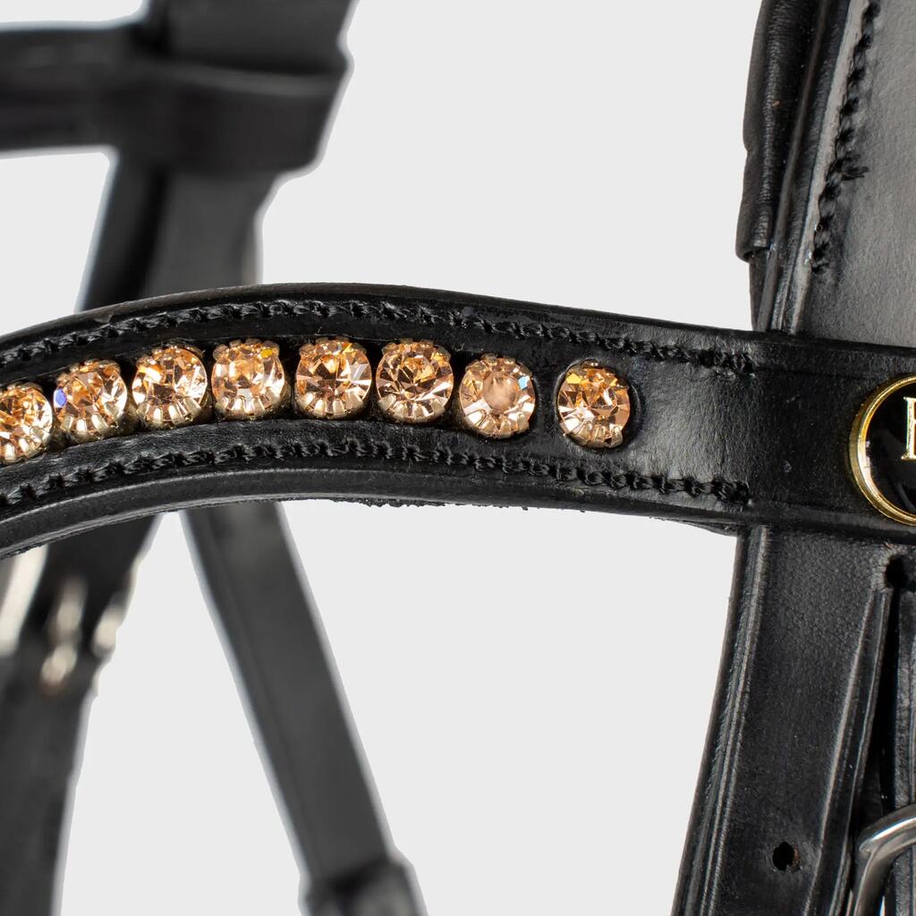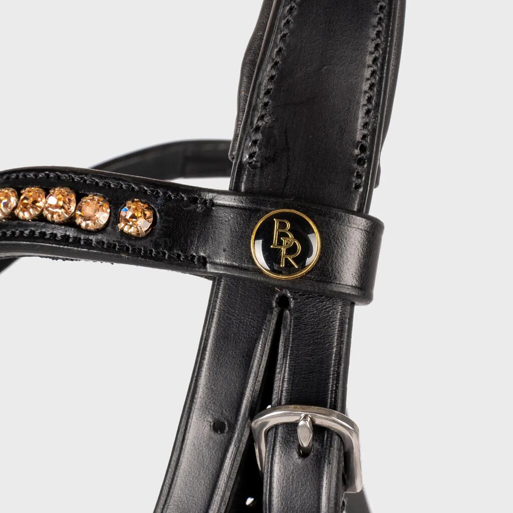 Discover the BR Equitation Oldham bridle: the perfect choice for a snug, elegant bridle with gold diamonds rose.
