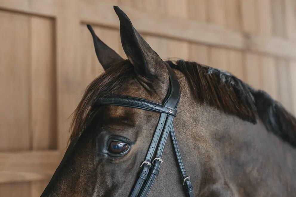 Choose elegance and performance with the Dy'on riding bridle. Designed for horses, offering comfort and precision. Discover it now!