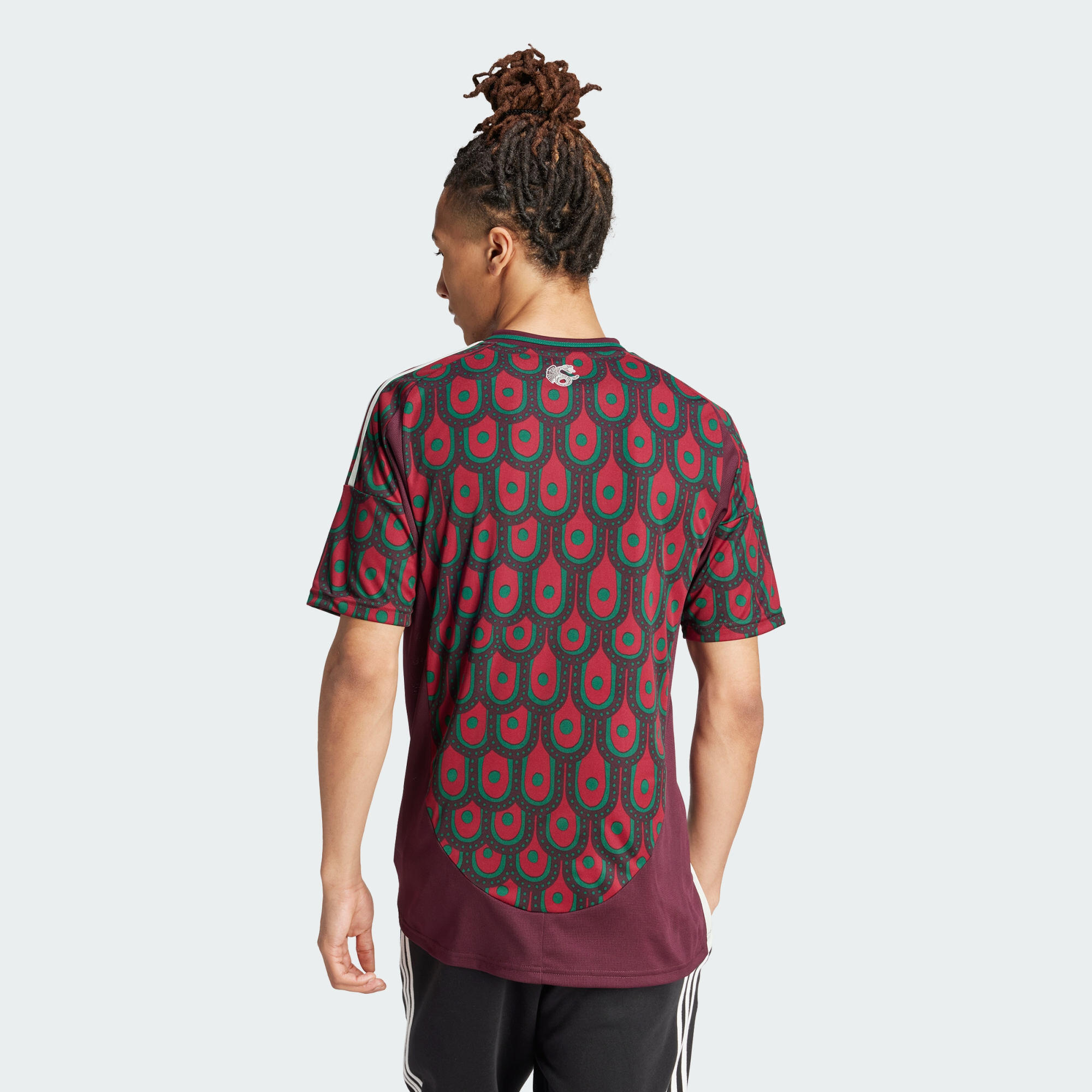 Created for expressive football fandom. Repeated across the front and back, the eye-catching eagle design on this adidas Mexico home jersey takes its inspiration from traditional folk art. Behind the rich symbolism, moisture-managing AEROREADY makes this shirt perfect for backing your team. That woven badge on the chest puts your support on permanent display.The main material of the jersey is 100% recycled polyester excluding trimming and decoration.