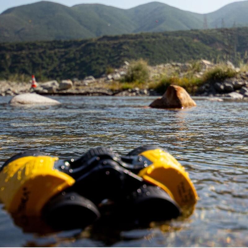 The Barska Floatmaster 7x50 WP waterproof binoculars are specially designed for water sports enthusiasts and water lovers. These binoculars float in the water if dropped and are waterproof. The viewer provides a stable image even in rough ocean, lake, or river conditions. The Floatmaster is compact, easy to use, and maneuverable. Here are the specifications of the Barska Floatmaster 7x50 WP: 7x magnification, Porro prisms, 50mm objective lens (BAK-4), fully multi-coated optics, floating power, blue tint on the lenses (to reduce glare), large knurled center focusing knob, waterproof/error-proof construction, yellow rubber-armored housing, length 20cm, weight 1068 grams, center focus, close focusing down to 5 meters, 23mm eye relief, 7.0mm exit pupil, 122.7m field of view at 1000m, right eye diopter. The Floatmaster's rubberized outer layer provides excellent shock resistance and extra grip. The optics are fully multi-coated to maximize light transmission and improve color rendition and contrast. Binoculars for various outdoor activities, especially on and around water. The binoculars come with a carrying case, neck strap, and lens cloth.