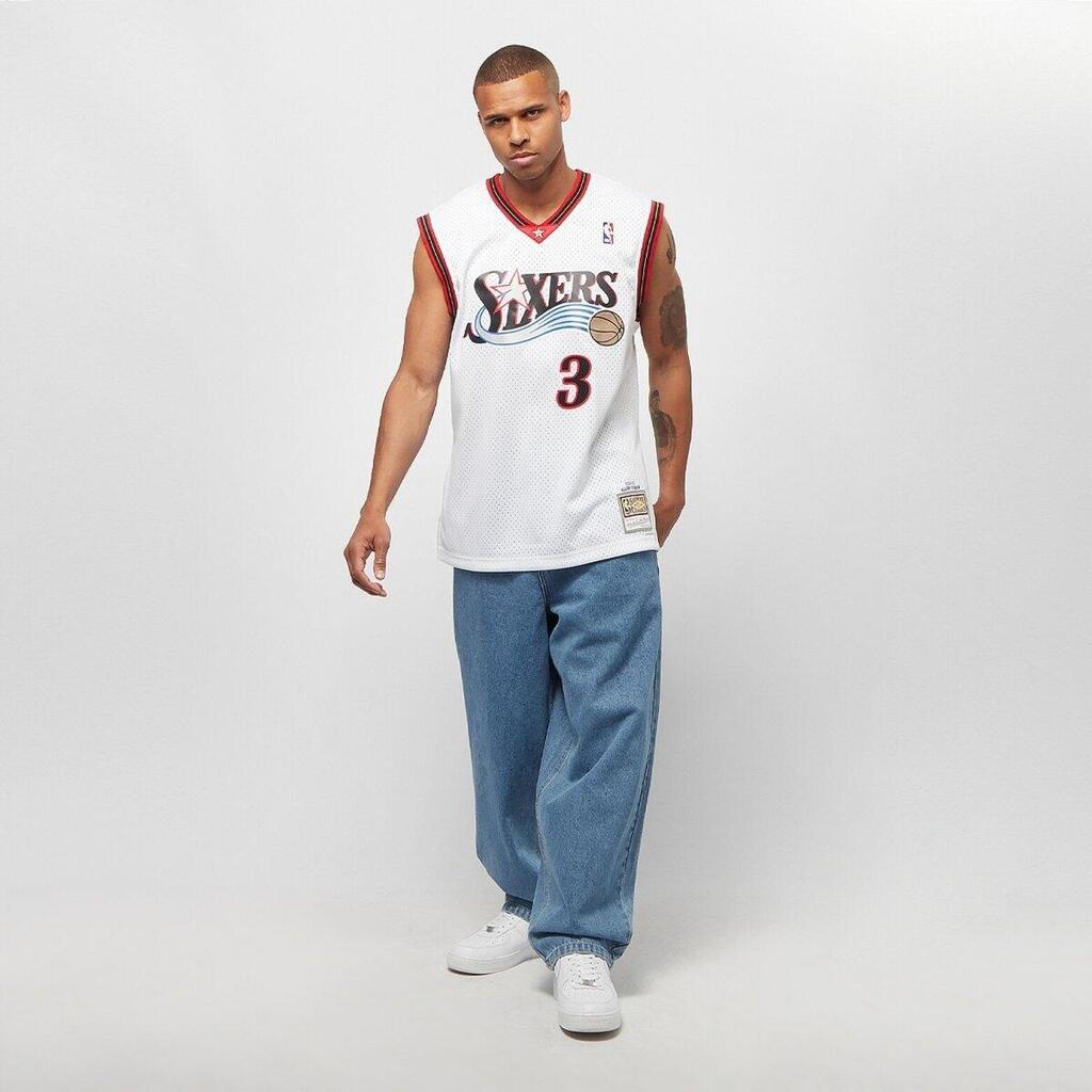 This retro men's jersey, flocked to Allen Iverson, is the perfect piece to pay tribute to the iconic Philadelphia 76ers point guard on a daily basis.