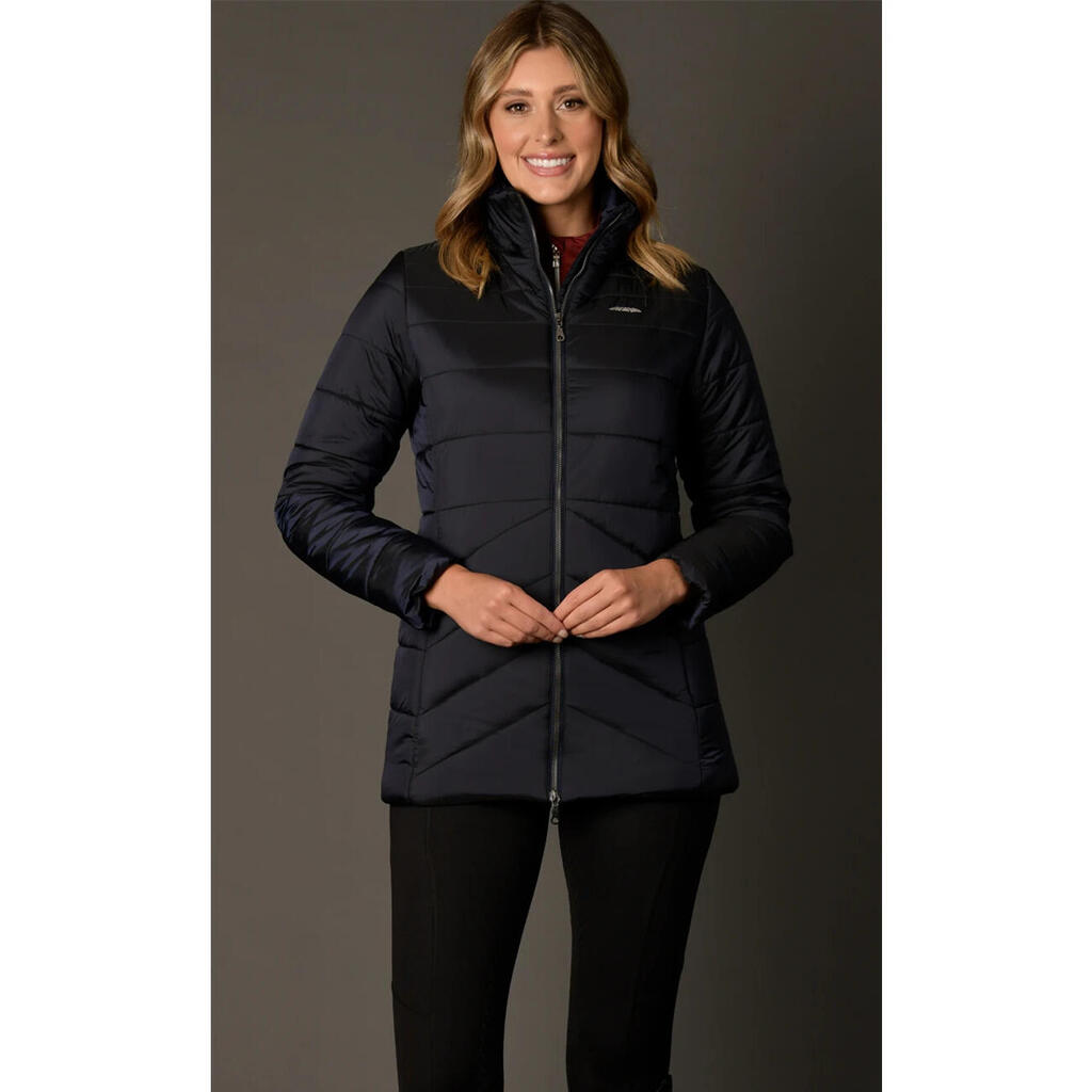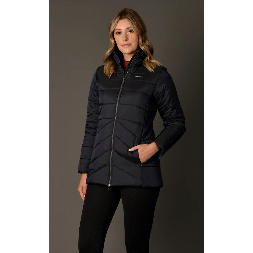 The women's down jacket Weatherbeeta Harlow is a must-have for all horse riding enthusiasts. With its sleek design and advanced technology, this jacket offers unparalleled comfort and protection during your riding sessions.