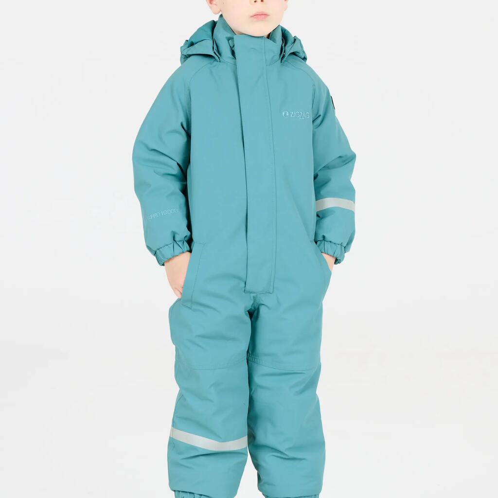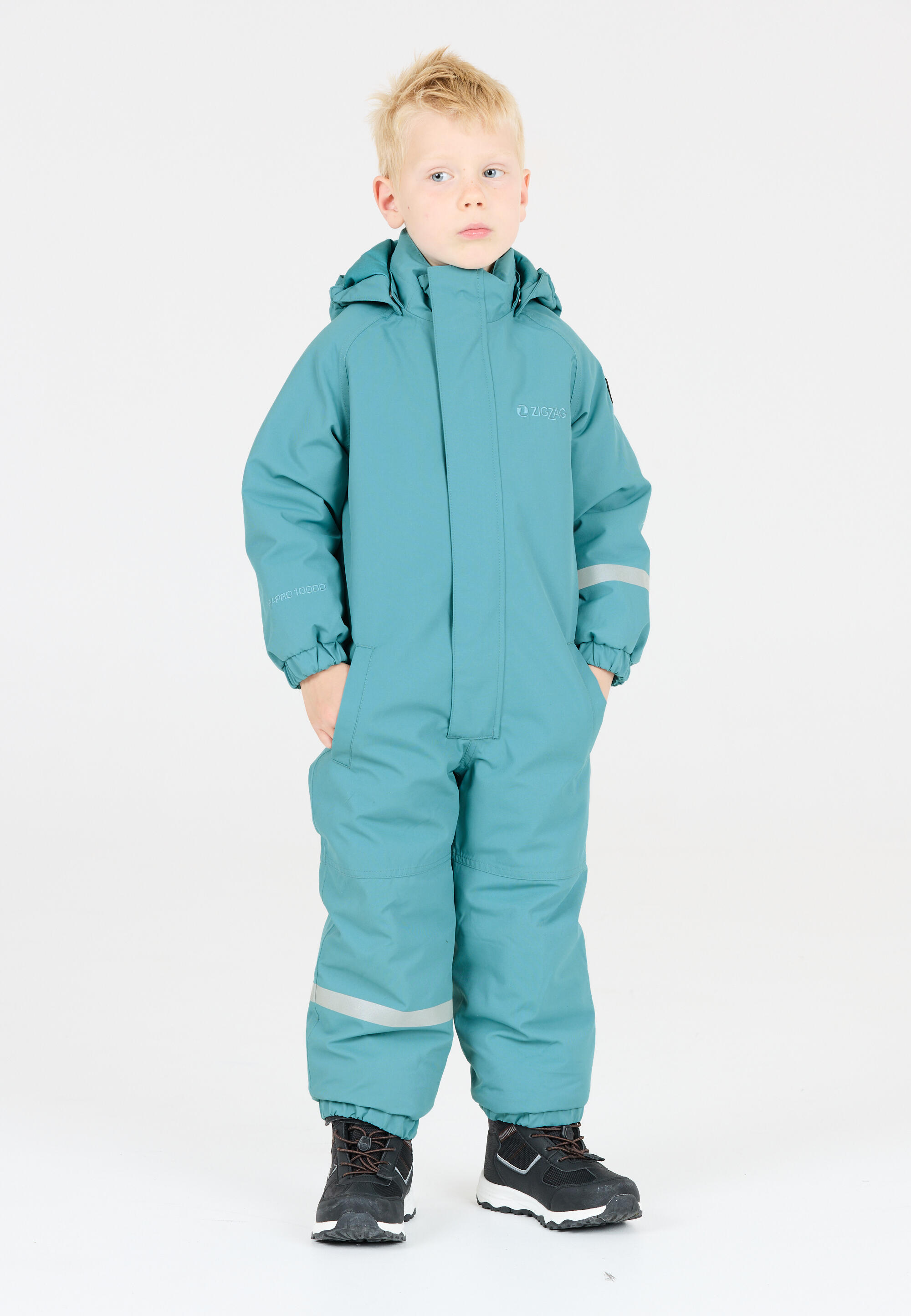The children’s hooded onesie Zigzag Vally W-PRO 10000, by the brand Zigzag, offers performance and style for young aspiring skiers.