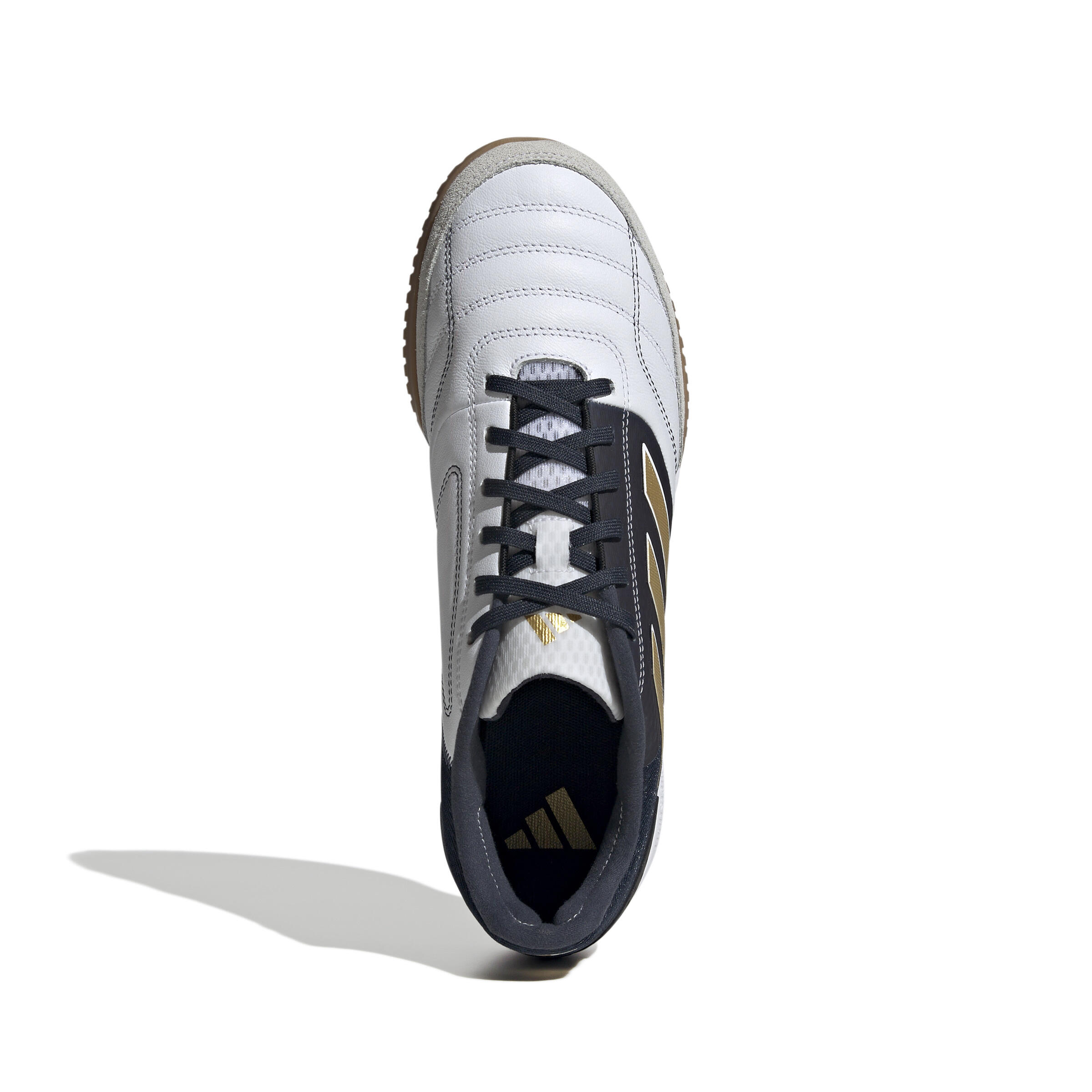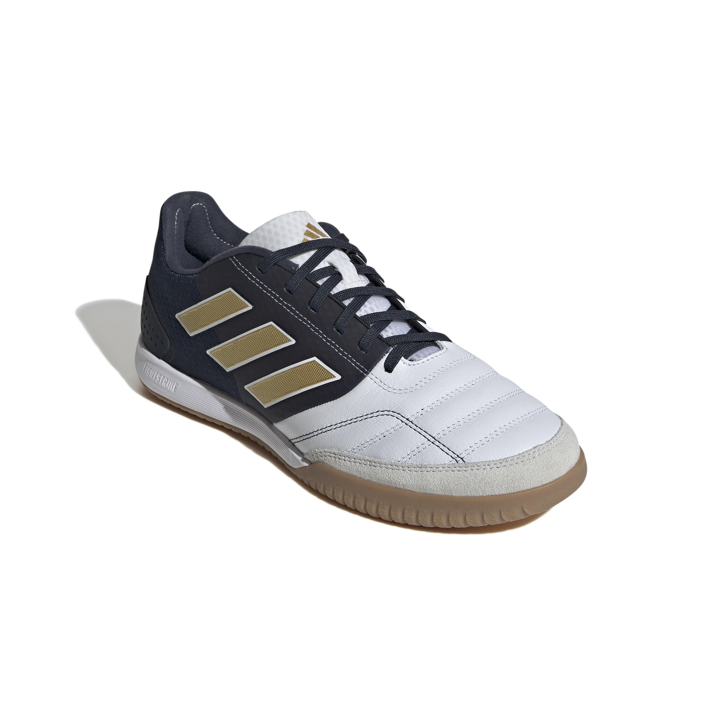 Step up your game with adidas Top Sala IC soccer boots. Designed with a U-shaped collar for easy slip-on and optimal support. 3 distinctive stripes for bold style.