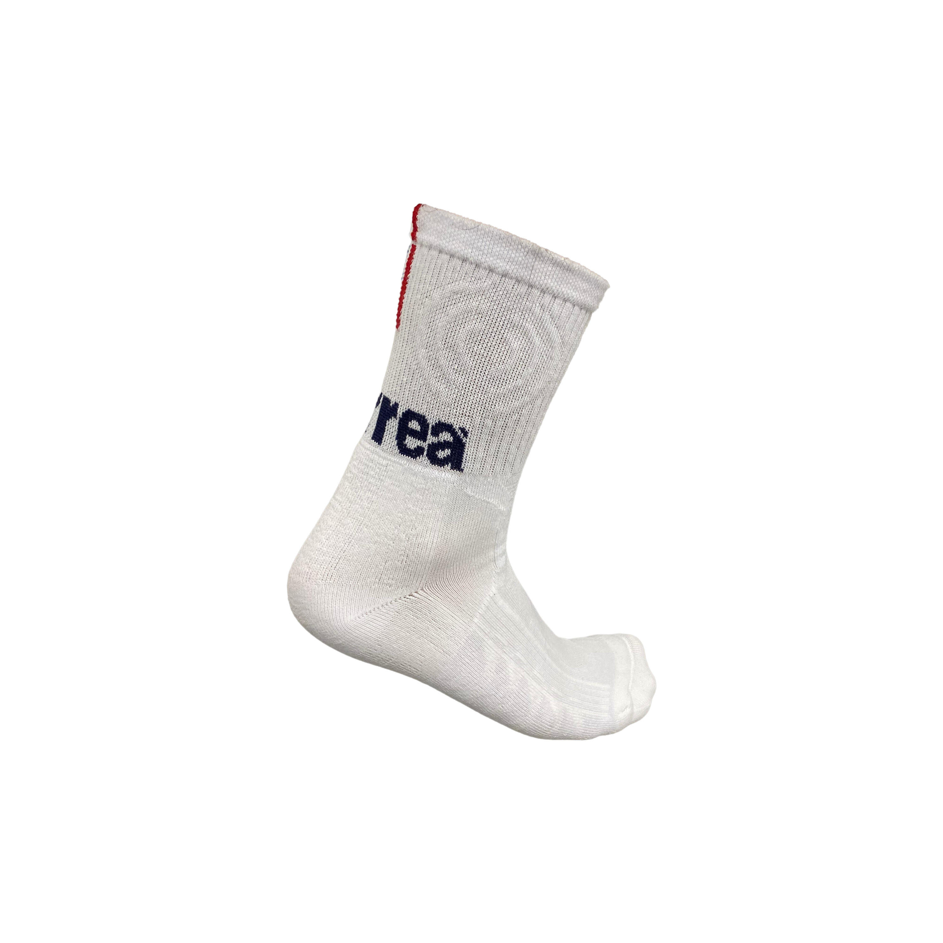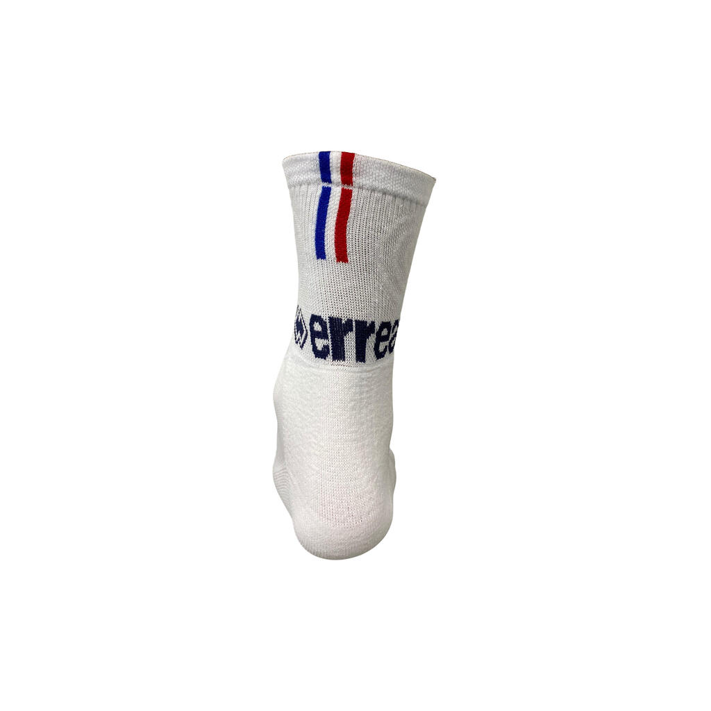 Support the France volleyball team with the comfortable Errea Skip AD socks in white and blue. Available in two sizes.
