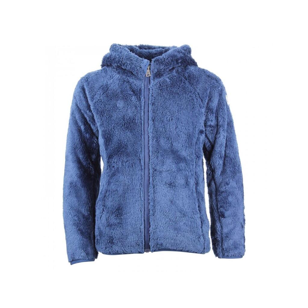 Softness and protection for active girls with Peak Mountain fleece, stand-up collar, hood and zip fastening. 2 zip pockets.