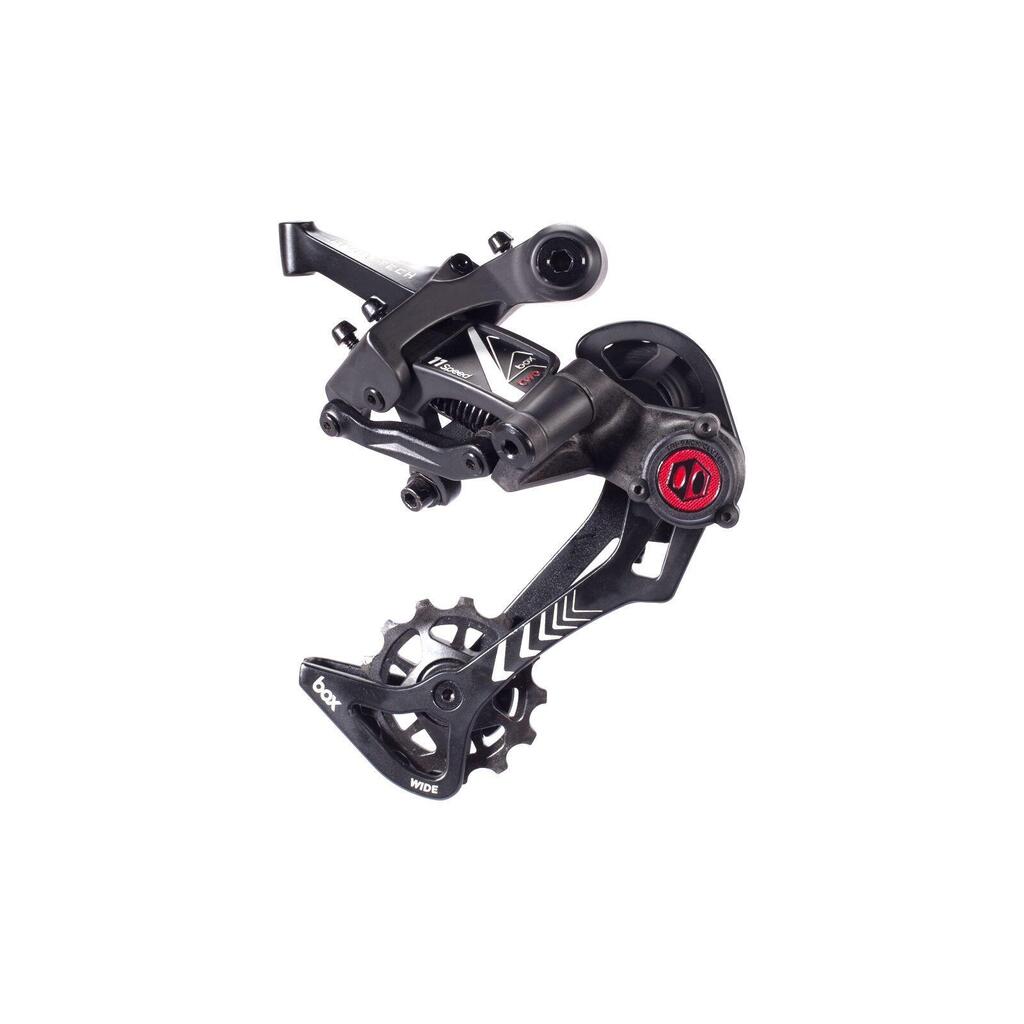 The BOX COMPONENTS Two 11-speed long clevis rear derailleur is a mid-range derailleur featuring several technologies such as Tri-Pack⢠technology, which provides an innovative chain tension spring that dramatically reduces derailleur clevis rebound and chain slap. The Tri-Pack⢠system also maintains tension for better chain winding Box Components. This technology has proved its worth on one of the world's biggest freeride events, which is the 'Red Bull® Rampage'.