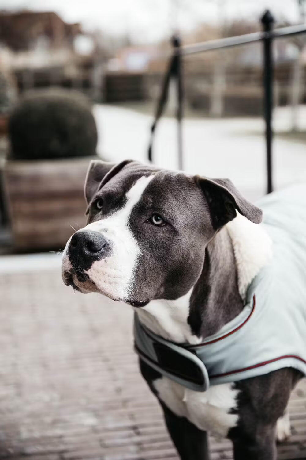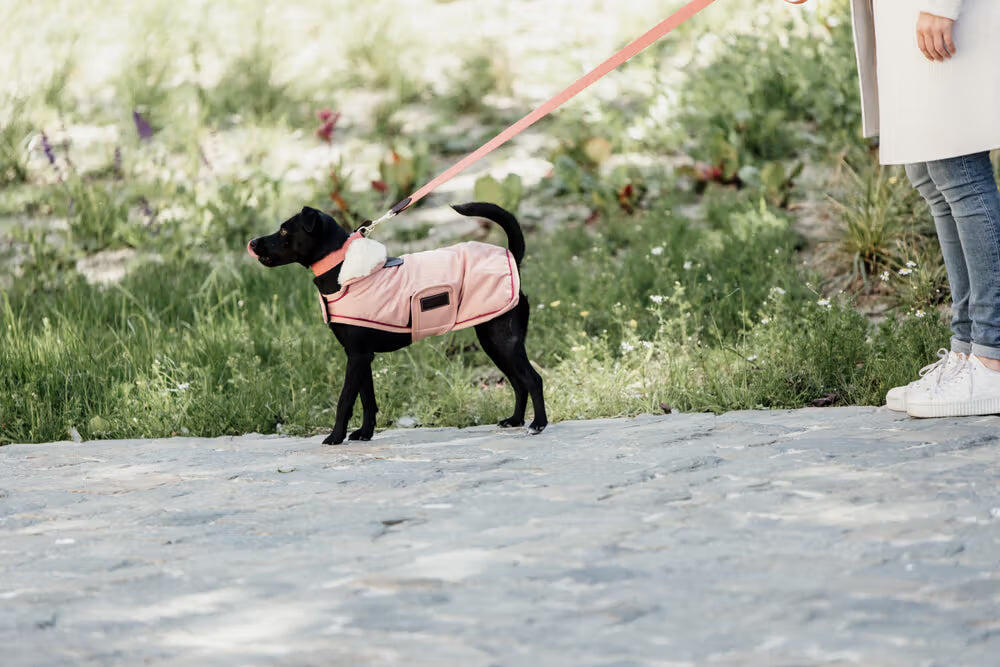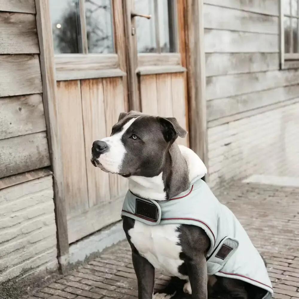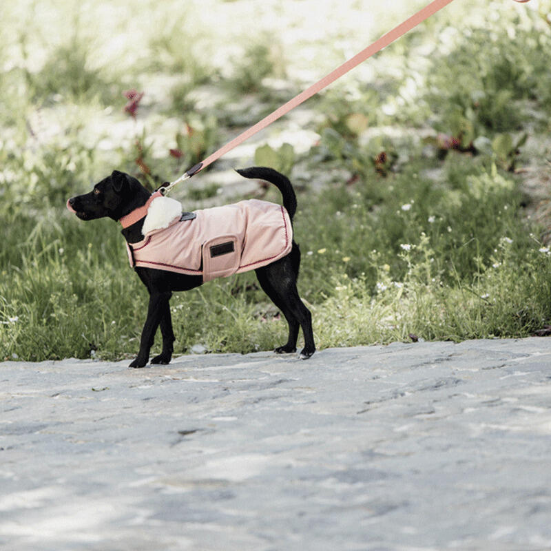 This exceptional 160g Waterproof coat provides every dog with a warm, dry coat durant on cold, wet winter days. Indispensable for dogs who don't like the cold and rain. Warm padding and artificial rabbit skin lining Waterproof, breathable membrane Long-lasting materials Easy to put on and take off Features The waterproof dog coat is an indispensable winter accessory for dogs that get cold easily or don't like the rain. Thanks to the artificial rabbit skin inside, the coat is very comfortable to wear. The strong, breathable materials are durable and easy to care for, for ultimate comfort for you and your pooch. Fabrics and materials The outer fabric of the dog coat is made of durable 10,000 mm (ISO standard) waterproof polyester with a breathable membrane. Thanks to this, your dog can run around in the rain all day without getting wet. The piping and logo on the side are reflective to keep your dog visible in the dark. To protect your dog from the cold, the dog coat has 160 g of padding and features an artificial rabbit skin lining. This lining creates tiny air pockets that trap and retain the dog's body heat. It also gives the dog's fur a lustrous sheen. A small artificial sheepskin hood is supplied, which can be folded down over the neck for extra coverage. Under the hood is an artificial leather flap. Under the flap is a small hole for a leash. Shape and size The waterproof dog coat comes in sizes XXS to XXL, so you can easily find a coat to suit your beloved friend. The coat is easy to put on thanks to hook-and-loop fastenings on the chest and one on the belly. These closures are very strong and durable, so your dog can play freely. There's also an elastic band so you can shape the coat to your dog's body. Care instructions The waterproof dog coat is machine washable at 30 degrees. For extra protection, we recommend using a wash bag and making sure the zippers are securely fastened. After washing the coat more than 5 times, an activated charcoal treatment is recommended to restore water repellency. The dog coat cannot be tumble-dried. Dimensions: XL = 60/70 cm, XS = 28/33 cm, XXL = 71/80 cm, XXS = 23/27 cm, DH = 40 cm