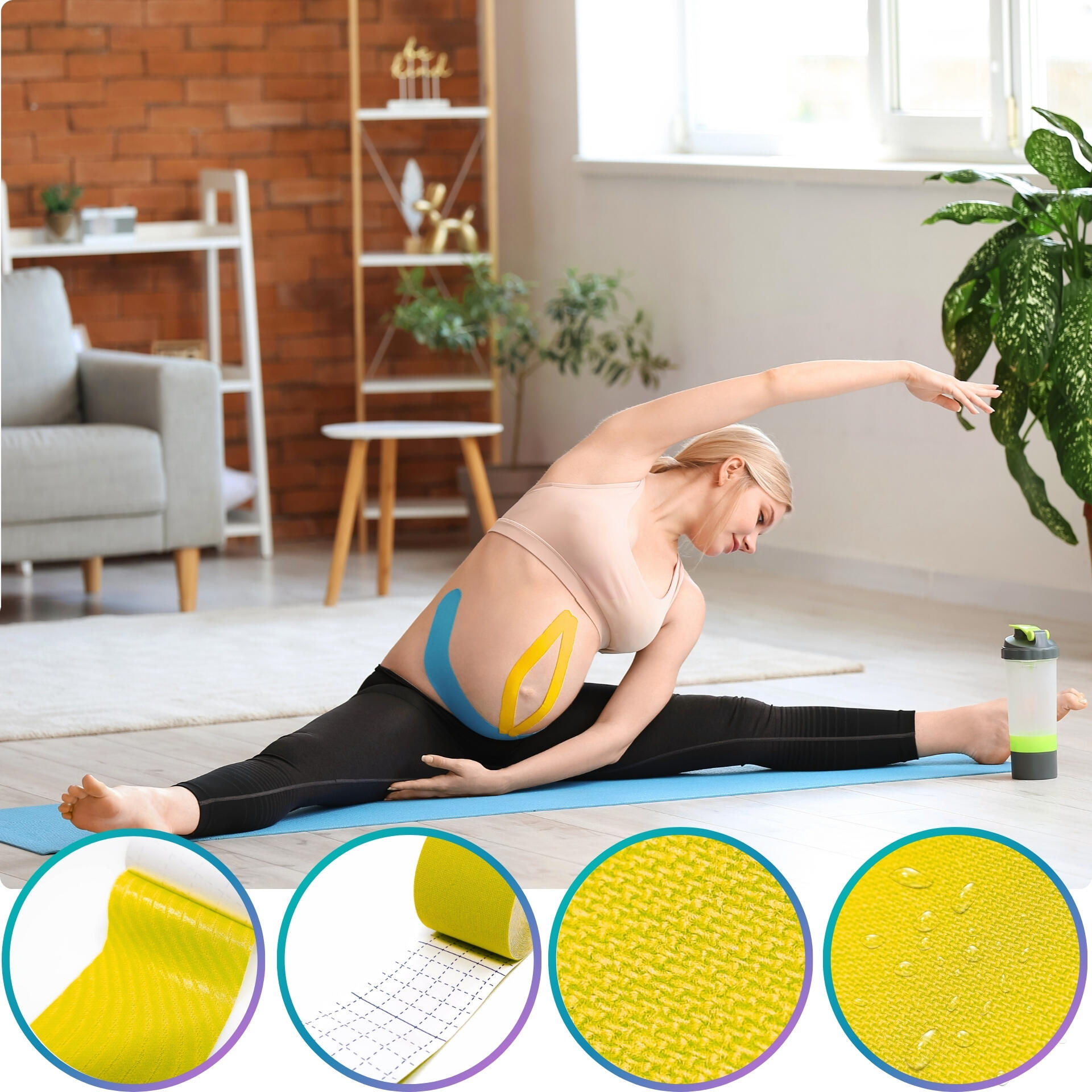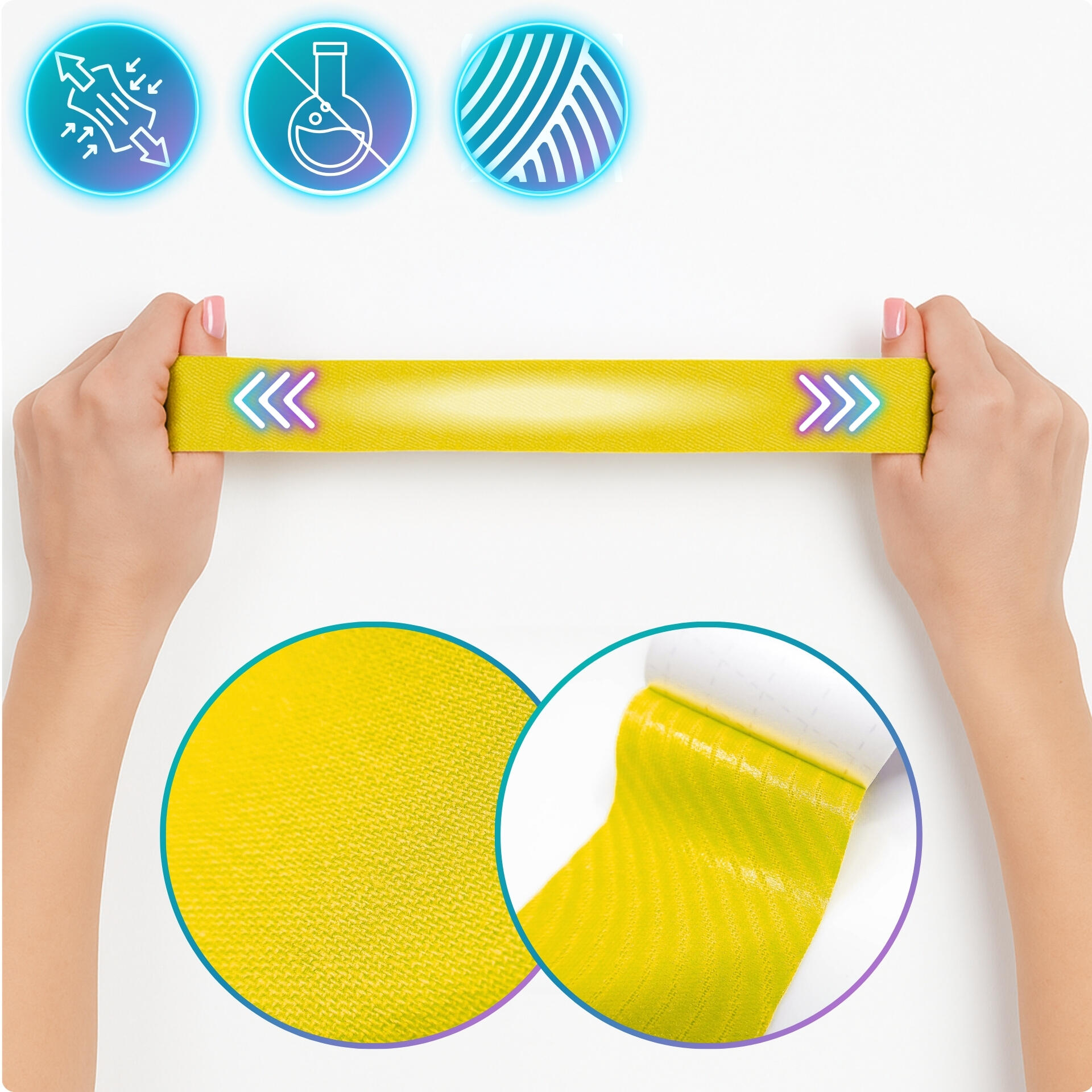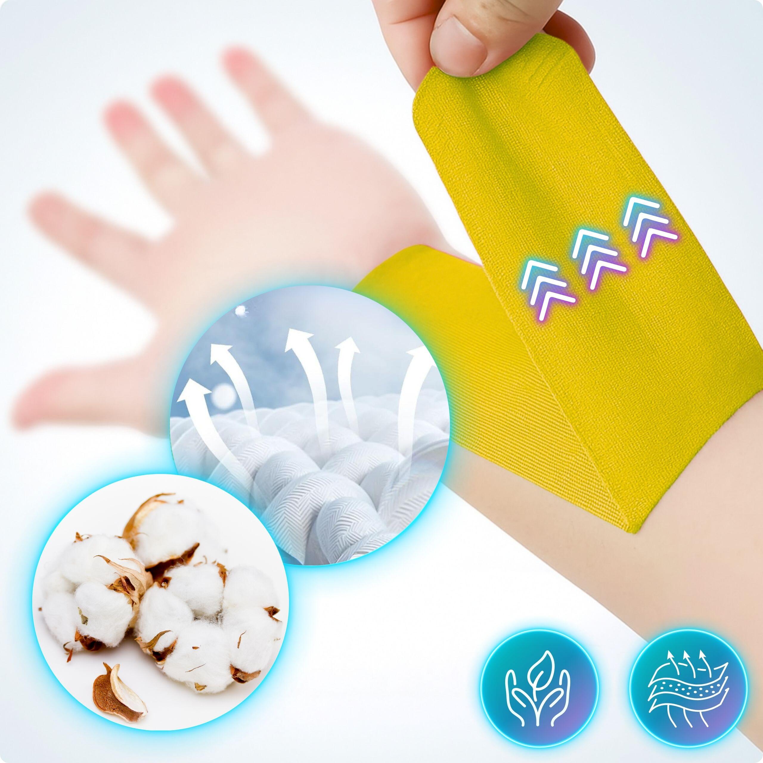 Sports kinesio tape: helps reduce pain and support recovery. Breathable cotton/spandex, hypoallergenic acrylic adhesive, strong hold up to 7 days.