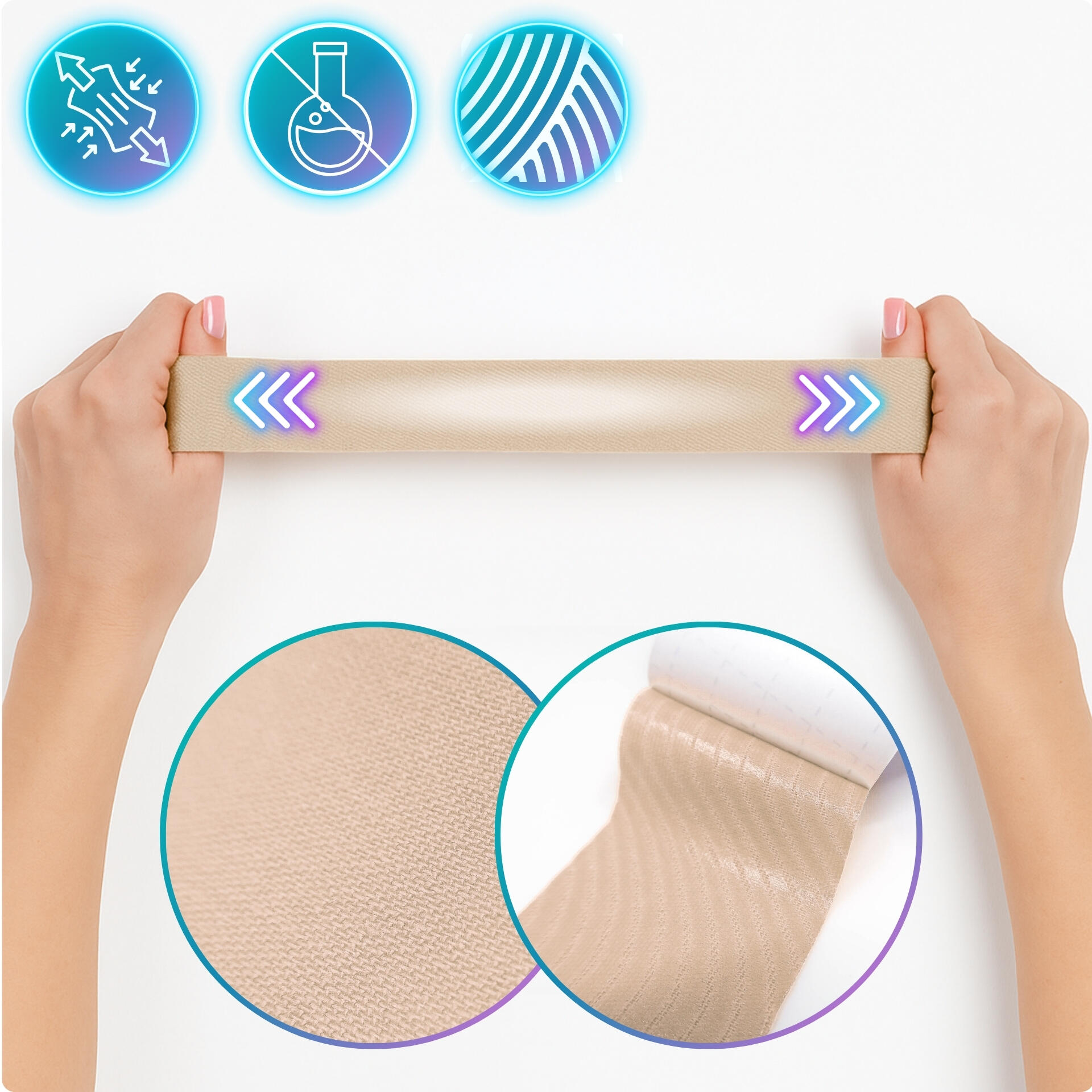 Medical Device Kinesio Tape made of cotton/spandex, odourless hypoallergenic adhesive. Suitable for sensitive areas - face/chest.