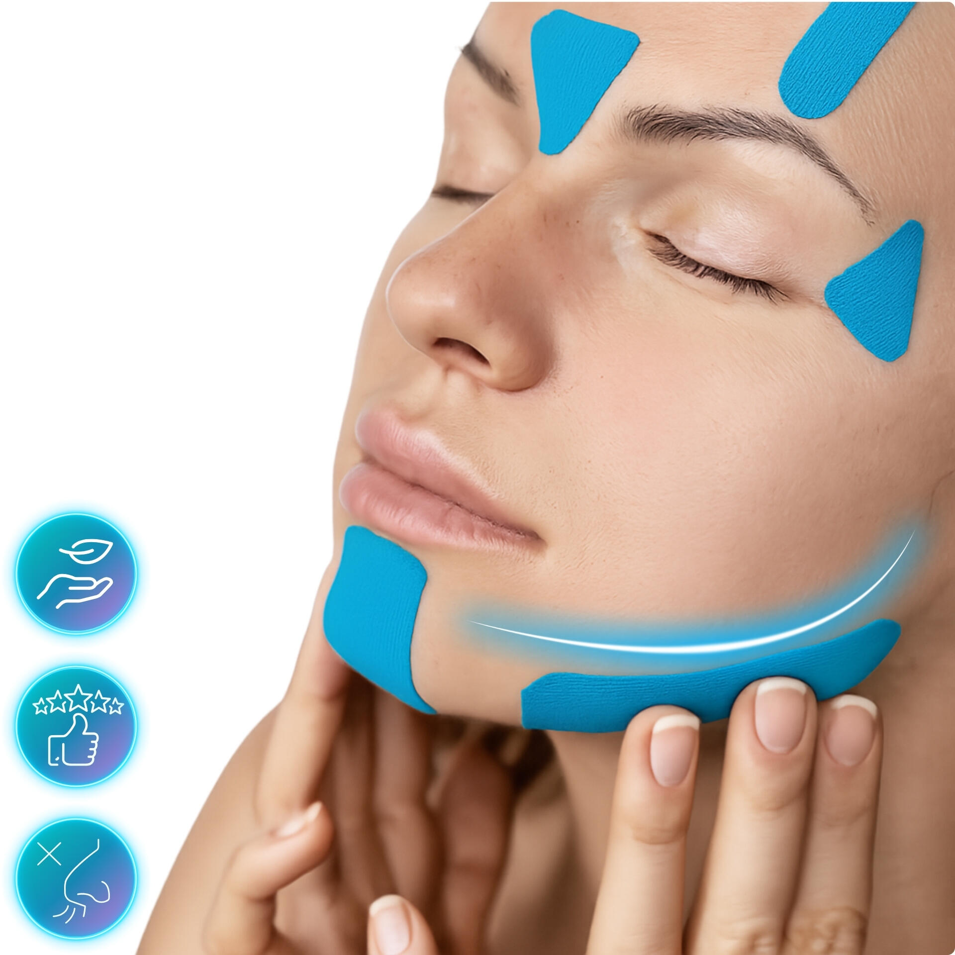 - Thanks to the hypoallergenic adhesive, it can be applied to sensitive areas such as the **face** or **chest/bust**.