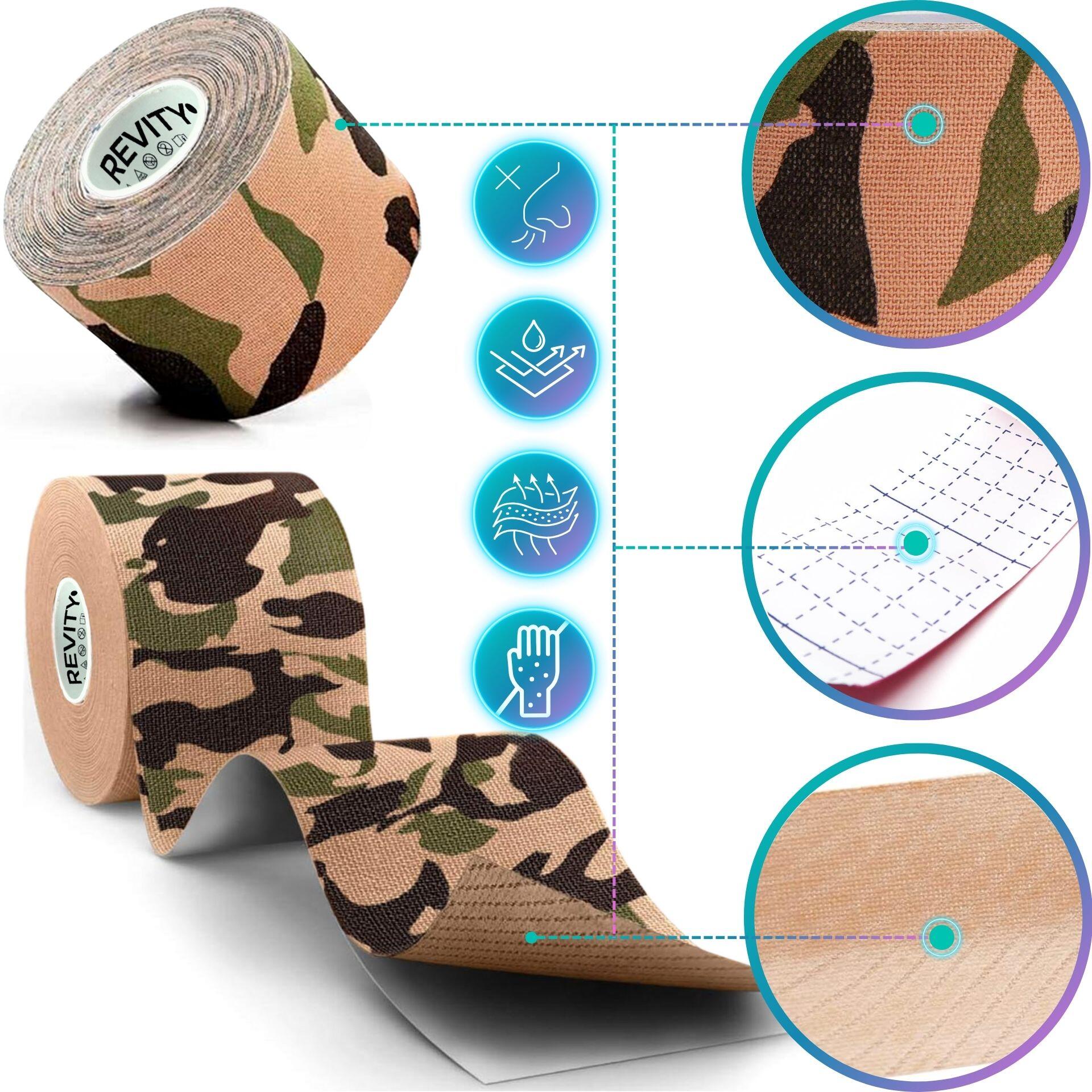 Sports kinesio tape: helps reduce pain and support recovery. Breathable cotton/spandex, hypoallergenic acrylic adhesive, strong hold up to 7 days.