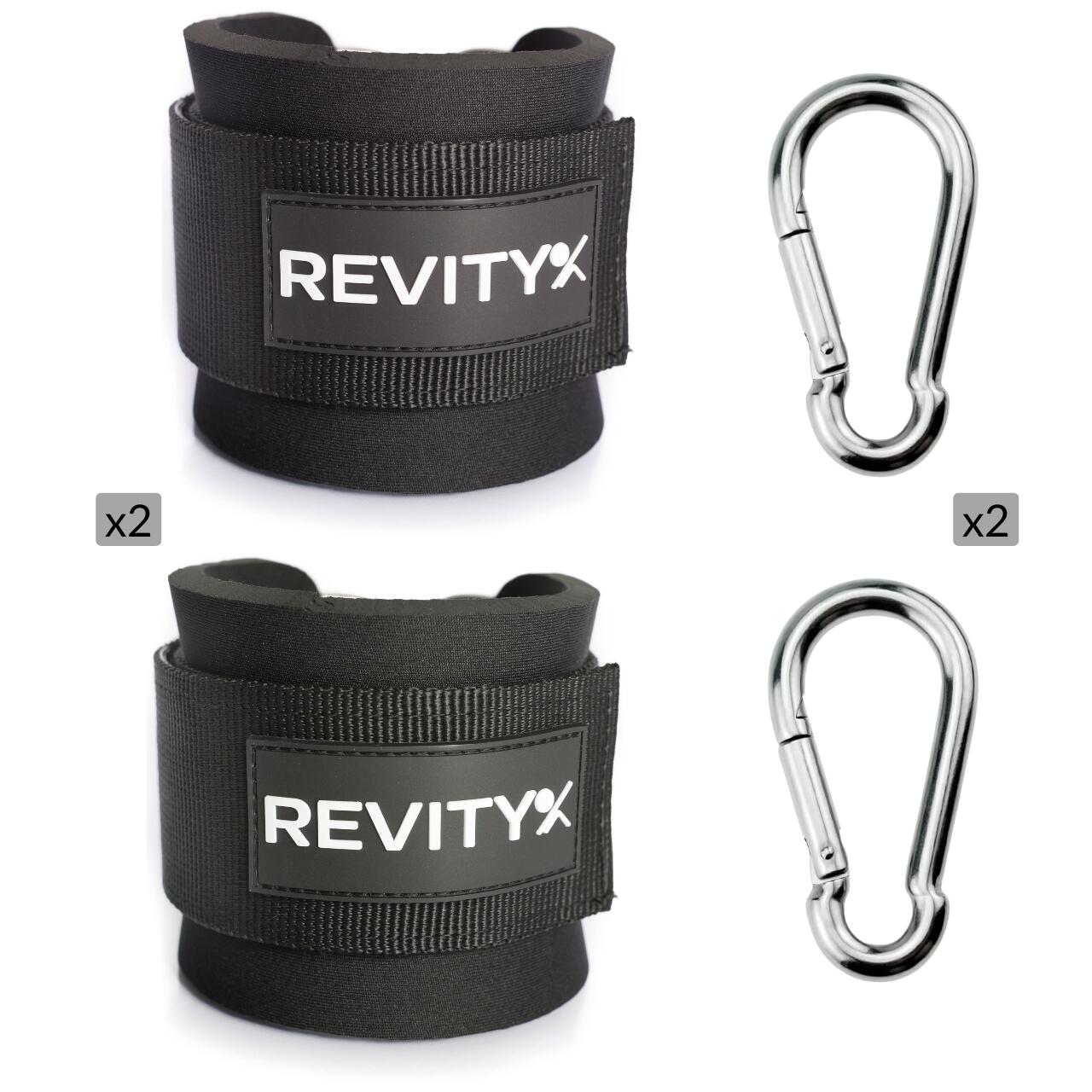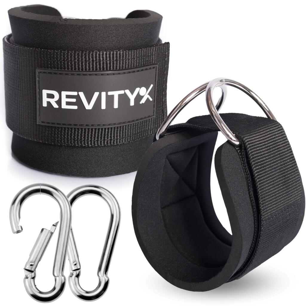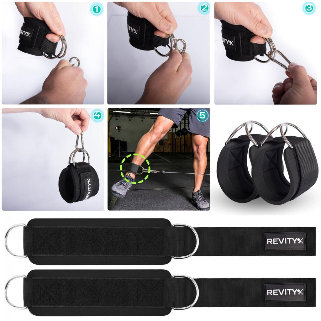 Universal straps for pulley or resistance bands: thick neoprene padding for comfort, no chafing. 2 large carabiners included.