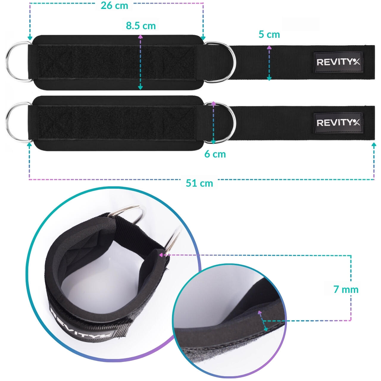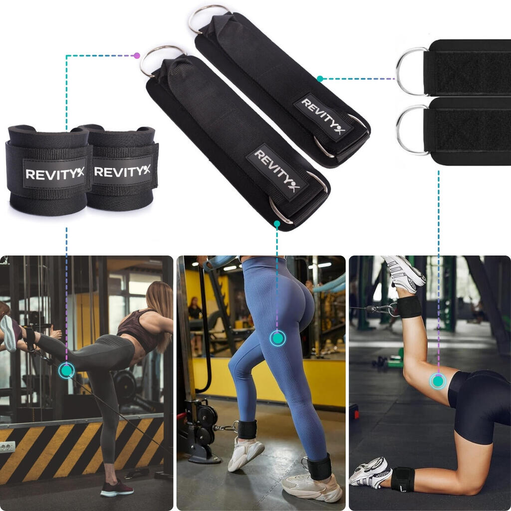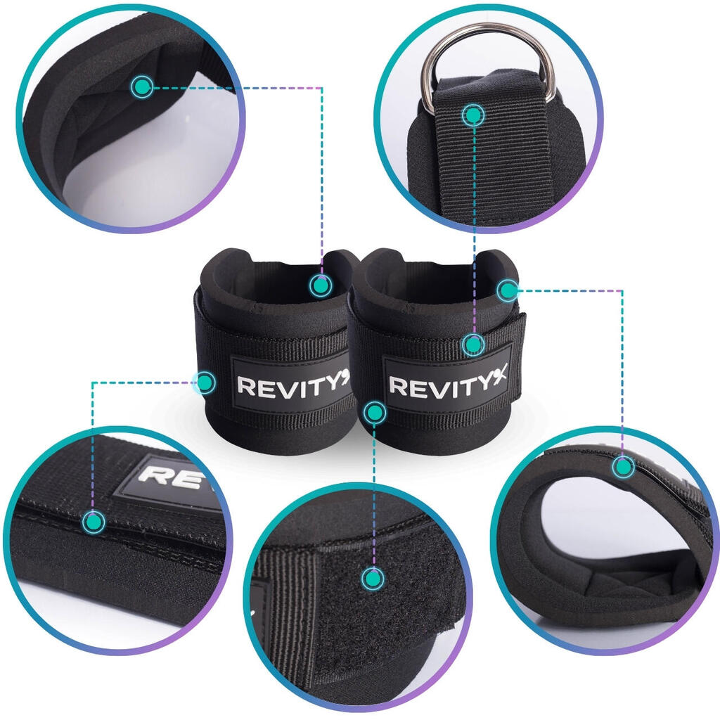 Universal straps for pulley or resistance bands: thick neoprene padding for comfort, no chafing. 2 large carabiners included.