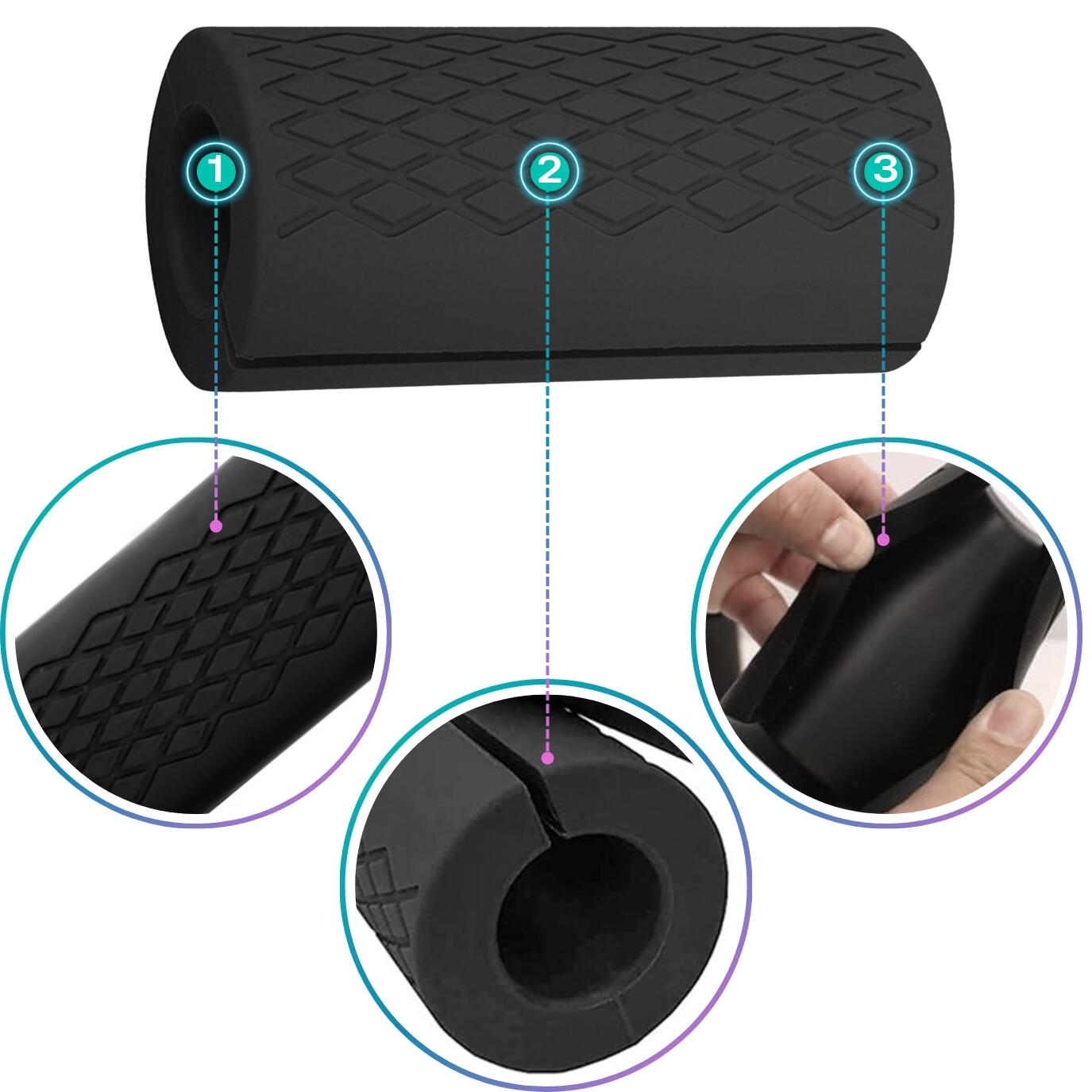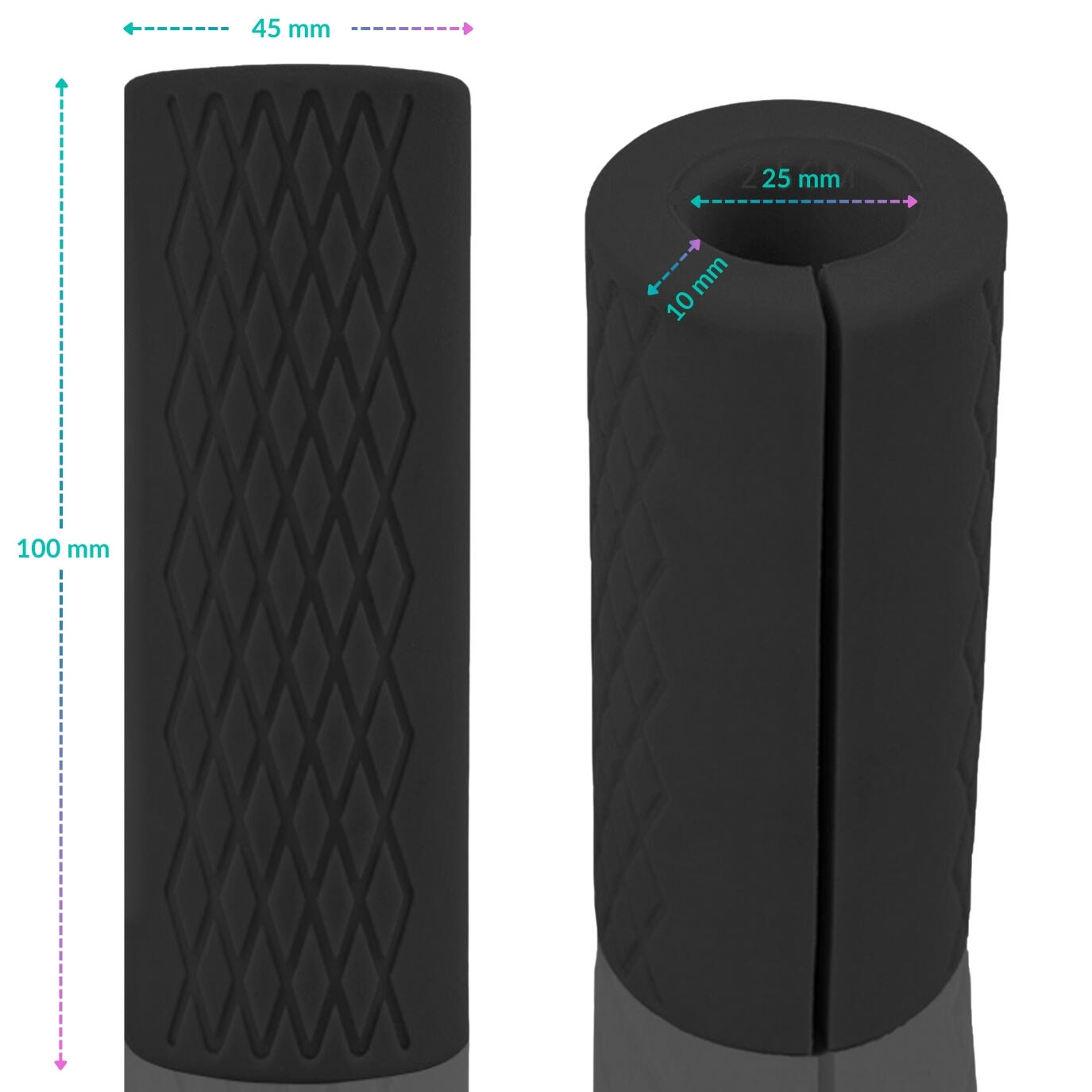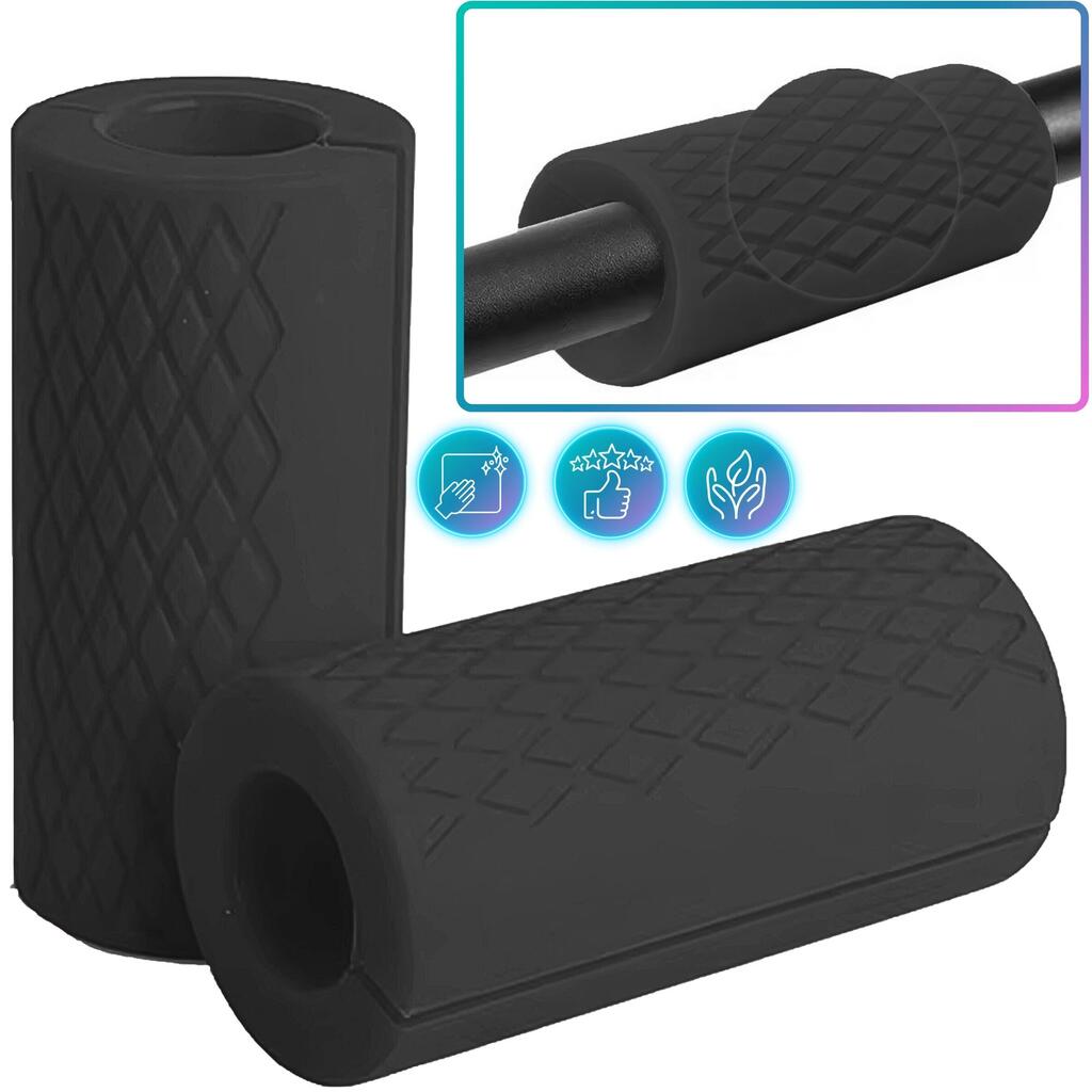 Non-slip silicone grips for barbell, dumbbells or pull-up bar: thicker grip for forearm work and stronger grip strength. Set of 2.