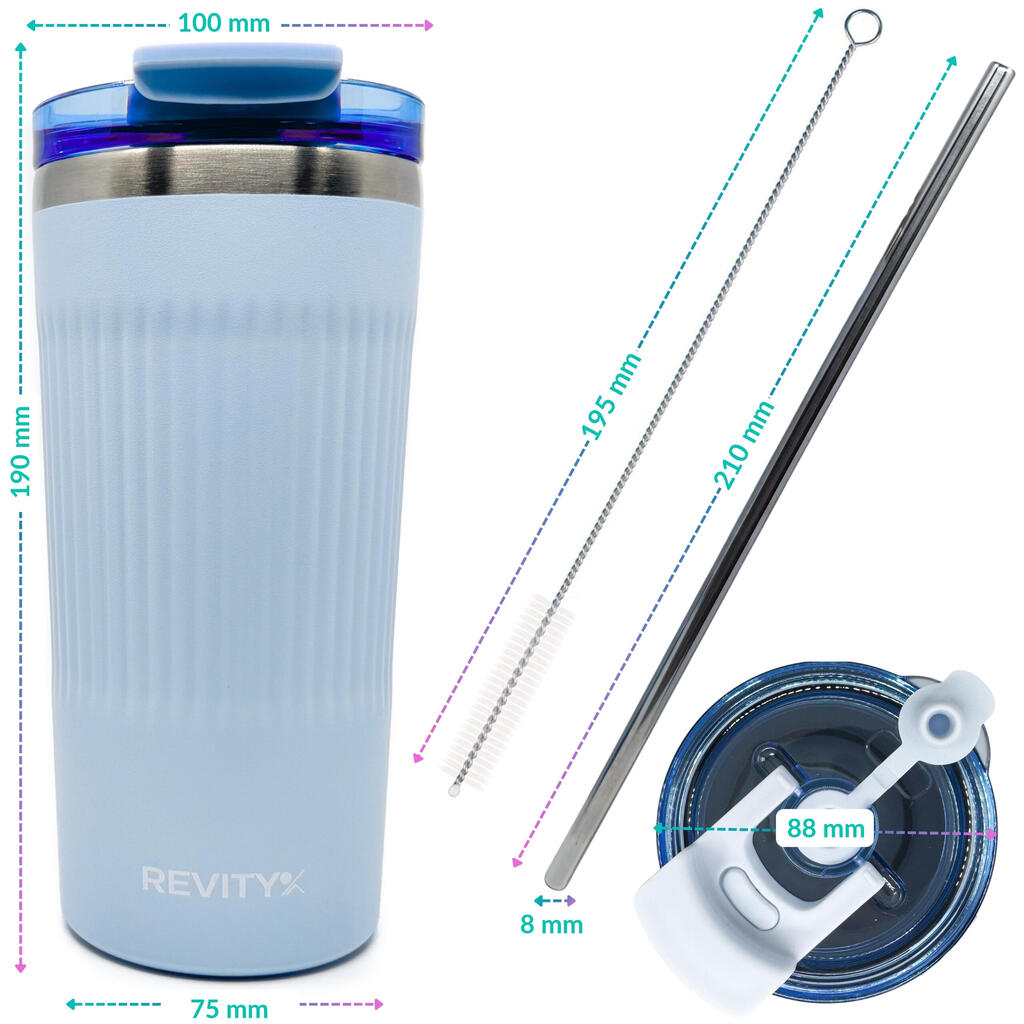 - **Included:** stainless-steel straw, cleaning brush, lid with seals and plug