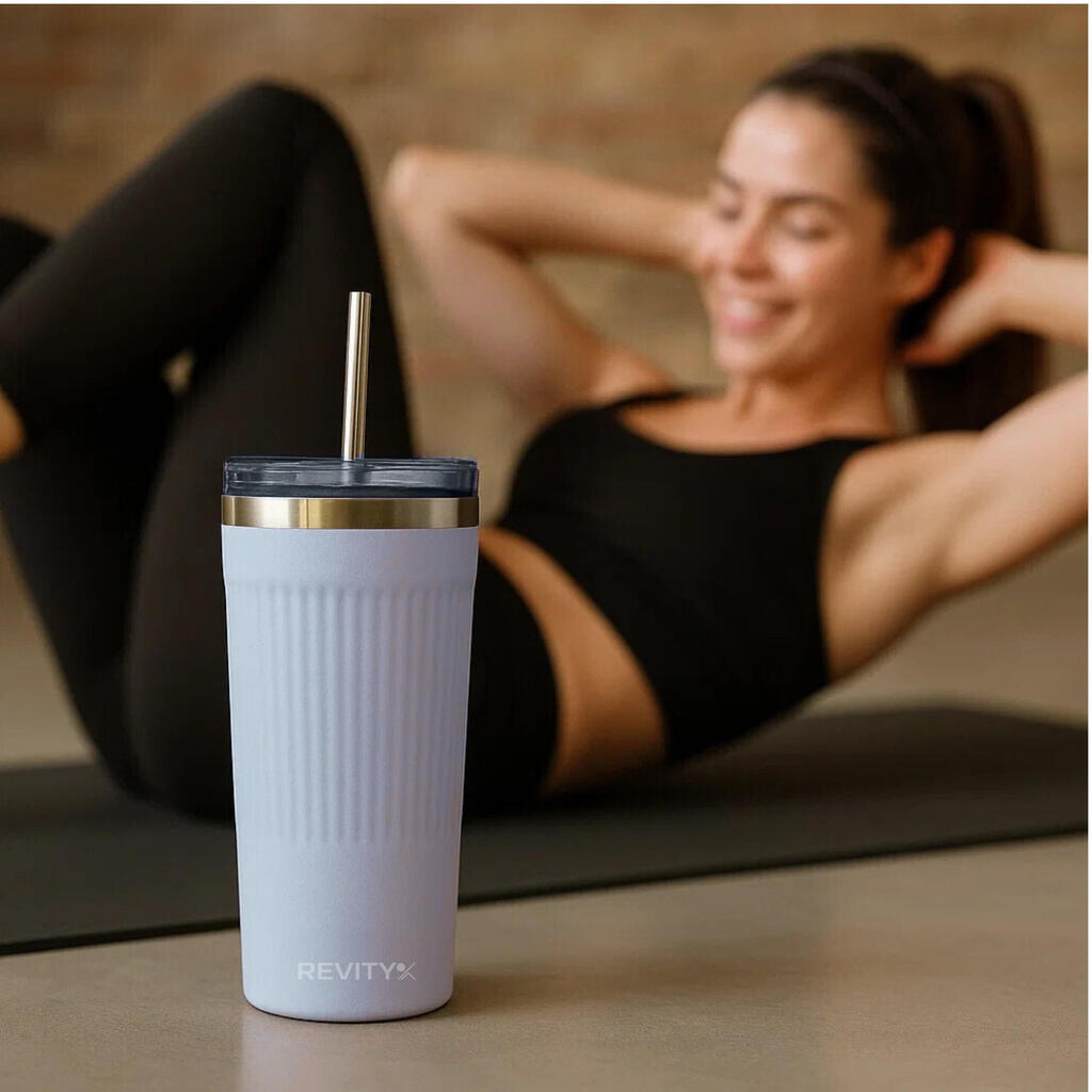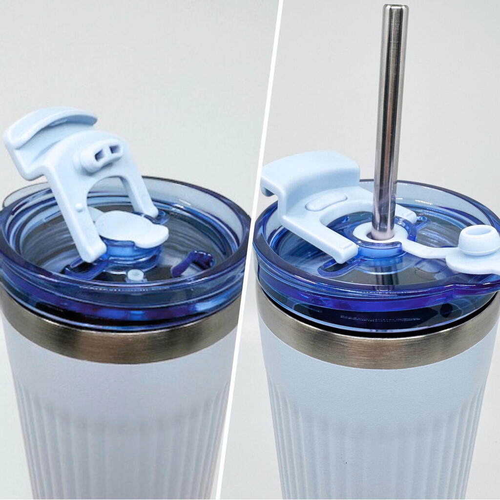 - **With the stainless-steel straw:** drink without tilting, ideal in the car or during activity.