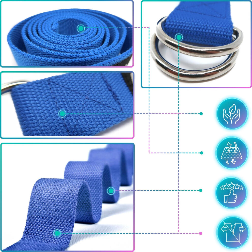 Beginner yoga kit: 2 high-density EVA blocks & strap with steel buckles. Stability & flexibility. Free exercise guidePDF.