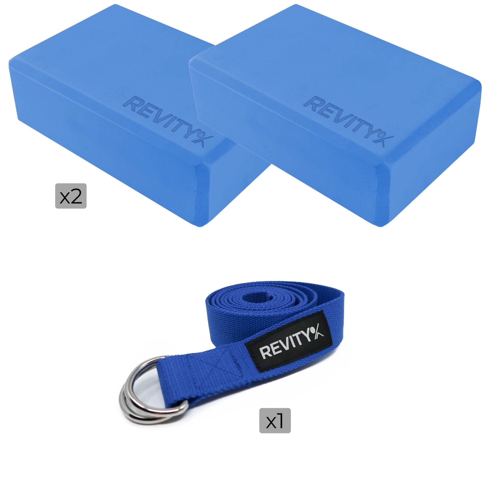 Yoga Set EVA Foam Blocks x2 & Yoga Strap, Training Plan PDF, Blue